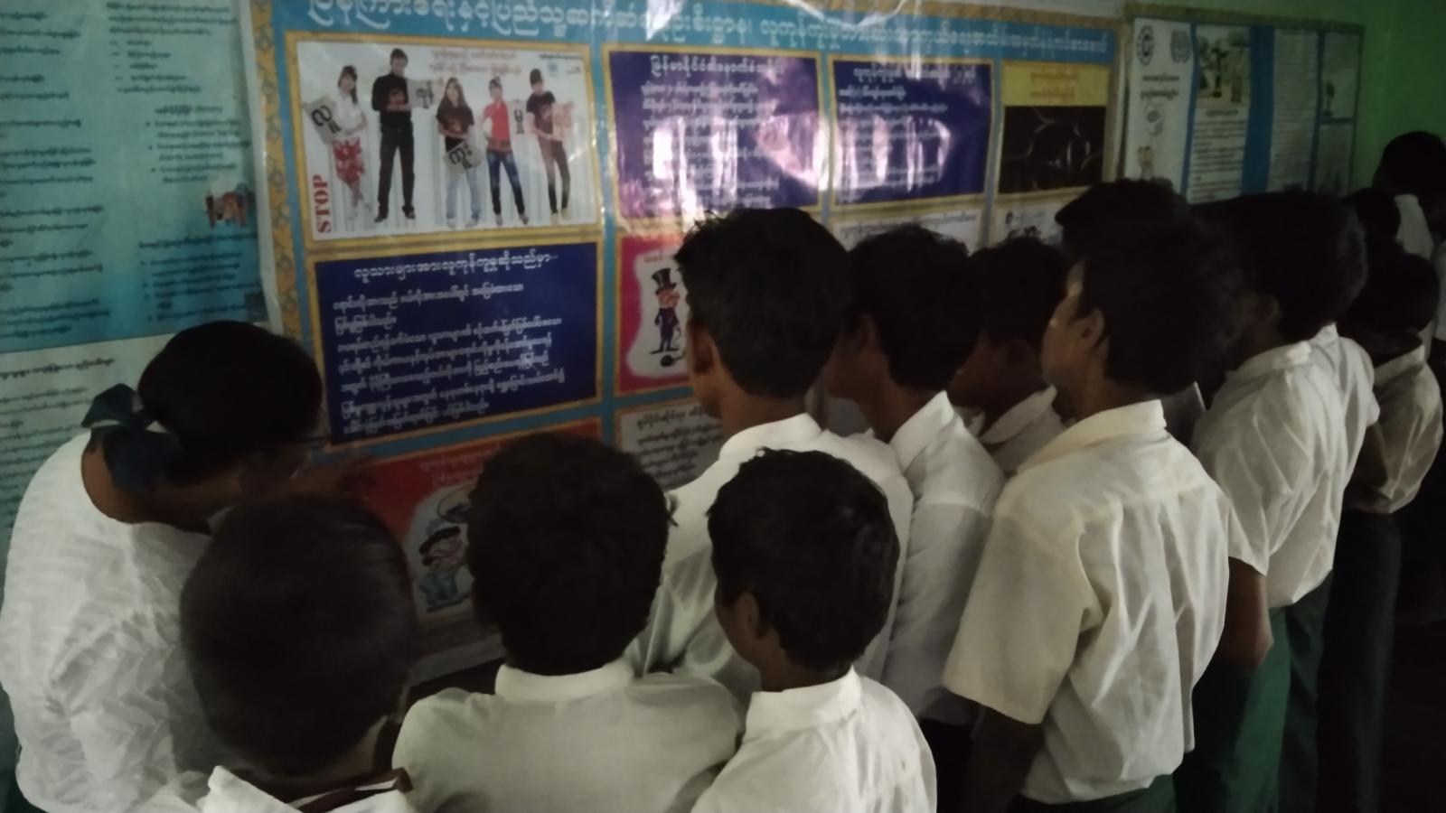 ဆက်လက်၍ လူကုန်ကူးမှုအန္တရာယ်၊ မူးယစ်ဆေးဝါးအန္တရာယ်၊ ကလေးအလုပ်သမားပပျောက်ရေး အသိပညာပေးနံရံကပ်စာစောင်တို့ကိုပြသရာ ကျောင်းသားကျောင်းသူများက စိတ်ဝင်စားစွာ ကြည့်ရှုလေ့လာကြကြောင်း သိရှိရသည်။