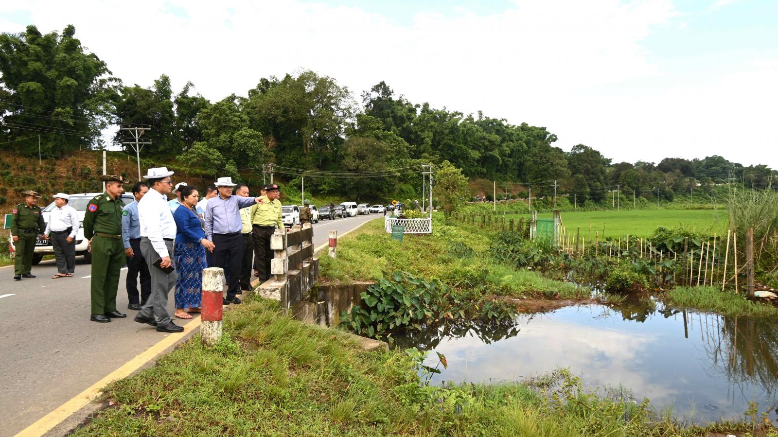 ယင်းနောက် လုံးစွတ်ရပ်ကွက်အတွင်းရှိ နမ်ထွမ်ချောင်းတံတားမှတစ်ဆင့် ချောင်းရေစီးဆင်း မှုအခြေအနေအားလည်းကောင်း၊ ကောင်ကထောင်ရပ်ကွက်အတွင်း လမ်းဘေး ဝဲ/ယာ တစ်လျှောက် လှည့်လည်ကြည့်ရှုစစ်ဆေးခဲ့ကြပြီး ပူတာအိုအခြေချစစ်ဗျူဟာ တပ်နယ်အတွင်းရှိ တပ်ထောက် စေတီတော် တည်ထားကိုးကွယ်ထားရှိမှုအား လှည့်လည်ကြည်ညိုခဲ့ကြကြောင်း သိရှိရသည်။