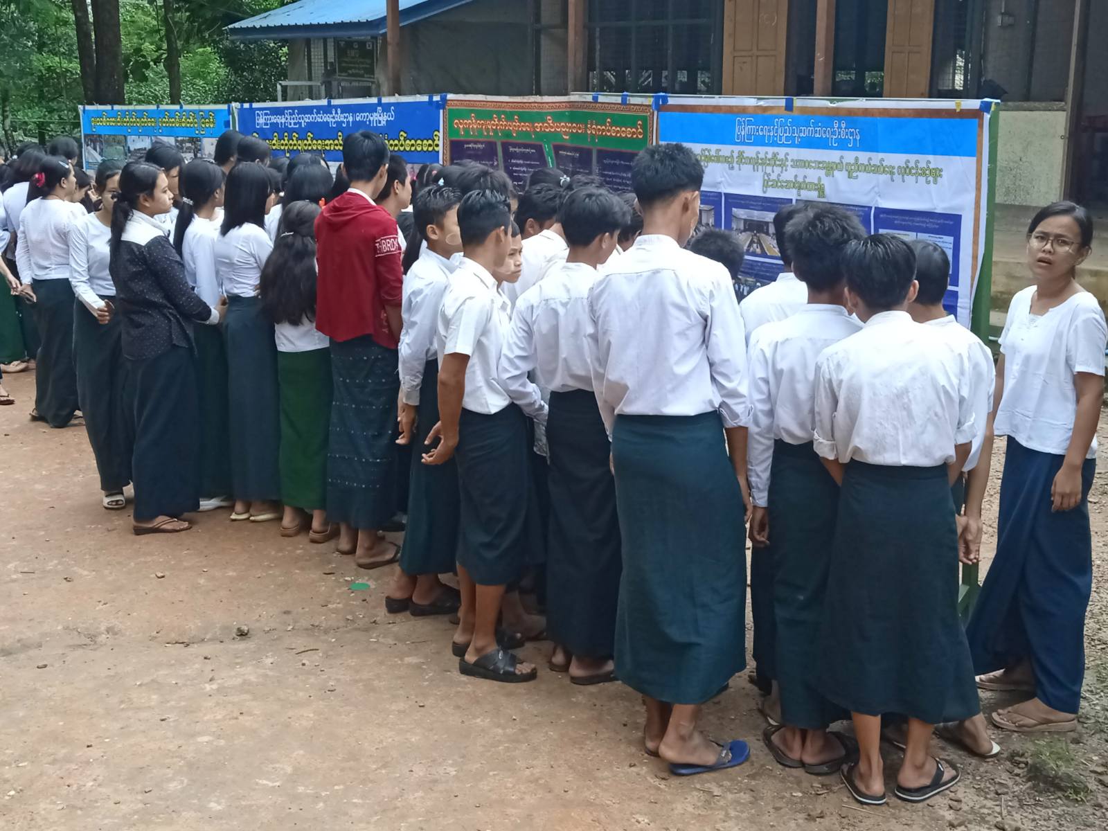 ထို့နောက် ပြန်ကြားရေးနှင့်ပြည်သူ့ဆက်ဆံရေးဦးစီးဌာနမှ ပြသထားသည့် သဘာဝဘေးအန္တရာယ် ကြိုတင်ကာကွယ်ရေး အသိပညာပေးနံရံကပ်စာစောင်များ၊ မူးယစ်ဆေးဝါးတိုက်ဖျက်ရေးအသိပညာပေး နံရံကပ်စာစောင်များ၊ လူကုန်ကူးမှုတိုက်ဖျက်ရေး အသိပညာပေးနံရံကပ်စာစောင်များ၊ သုတ/ရသ စာအုပ်စာစောင်များပြသထားရာ ကျောင်းသား၊ ကျောင်းသူများ စိတ်ပါဝင်စားစွာကြည့်ရှုလေ့လာနေကြကြောင်း သိရသည်။