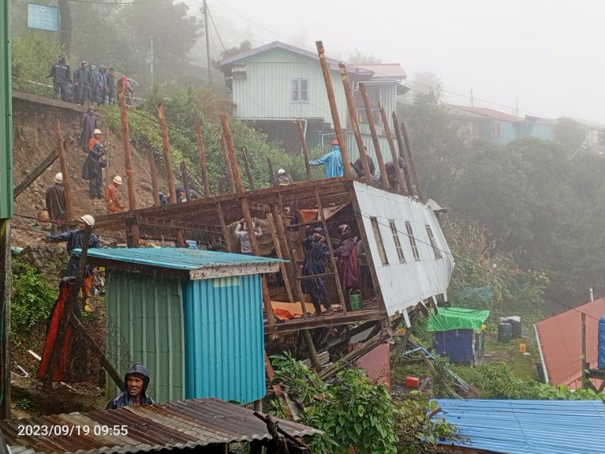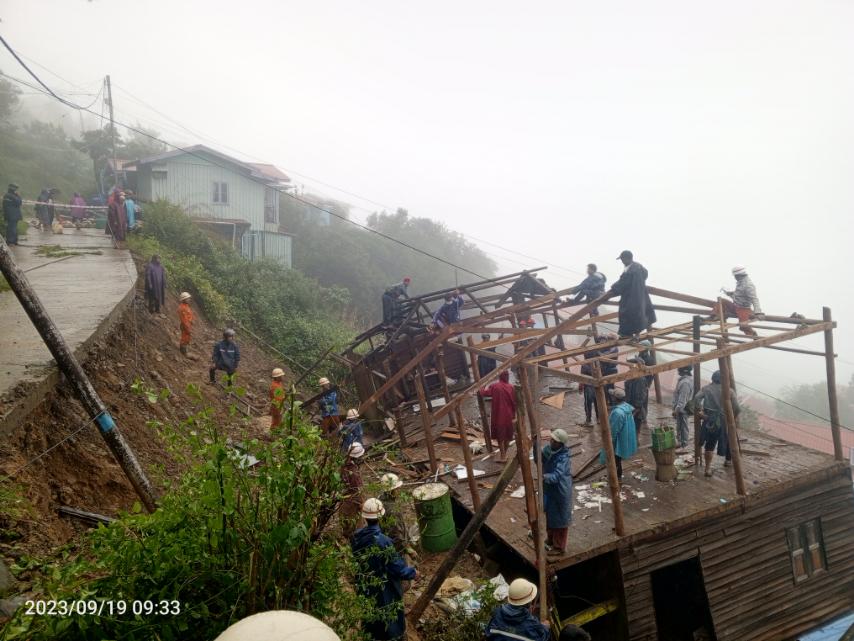 ချင်းပြည်နယ်၊ ဟားခါးမြို့တွင် ယနေ့တွင် မိုးရေချိန် ၂ ဒသမ ၇၆ လက်မ ရွာသွန်းမှုကြောင့် ဟားခါးမြို့၊ မြို့သစ်ရပ်ကွက်၊ မြို့ပတ်လမ်းနှင့် ပြည်နယ်လွှတ်တော်ရုံးအရှေ့ဘက်အကြား၊ ထက်လွေကွန်ကရစ်လမ်း မြေအောက်ခံမြေသားများ နံနက် ၆ နာရီခန့်က ပြိုကျ၍ လူနေအိမ်တစ်လုံး ပြိုကျသည်။