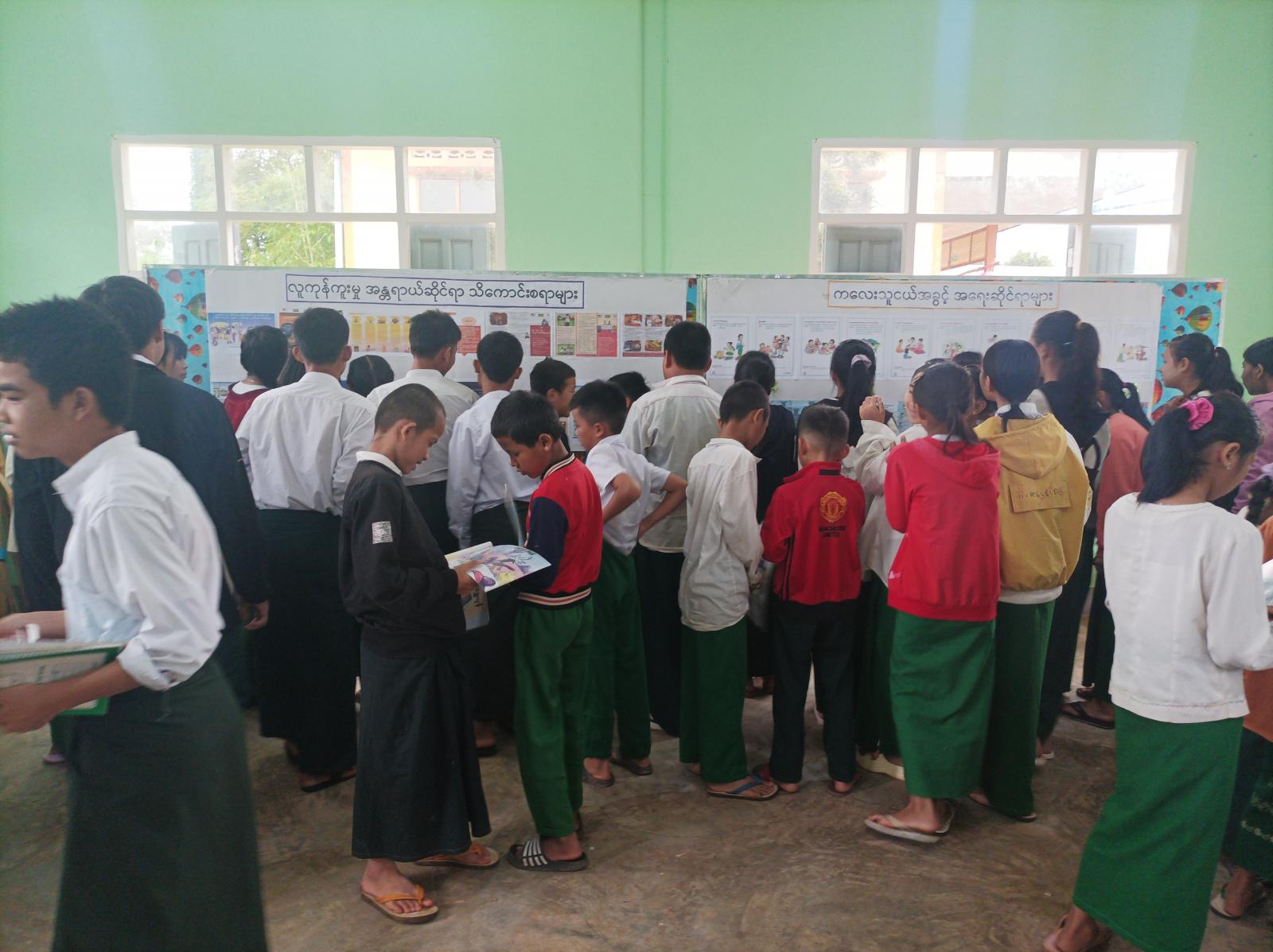 ထို့နောက် ပြန်ကြားရေးနှင့်ပြည်သူ့ဆက်ဆံရေးဦးစီးဌာနမှ နံရံကပ်စာစောင်နှင့် စာအုပ်စာစောင်များပြသခဲ့ပြီး ကျောင်းသား၊ ကျောင်းသူများက စိတ်ပါဝင်စားစွာ လေ့လာကြည့်ရှုခဲ့ကြကြောင်း သိရသည်။