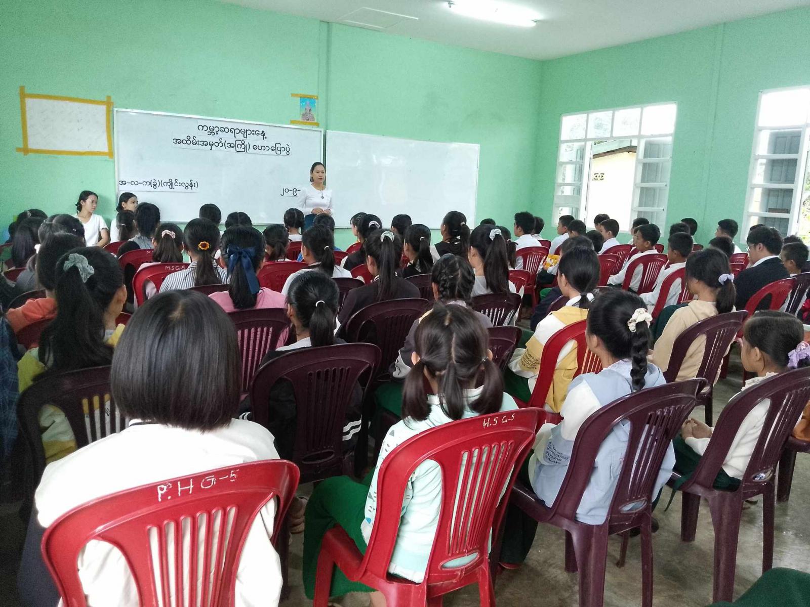 အဆိုပါ အသိအပညာပေးဟောပြောပွဲတွင် ပြန်ကြားရေးနှင့်ပြည်သူ့ဆက်ဆံရေးဦးစီးဌာန၊ မြို့ဦးစီးမှူး ဒေါ်ထင်ထင်ကျော်က အောက်တိုဘာလ (၅) ရက်နေ့တွင် ကျရောက်မည့် ကမ္ဘာ့ဆရာများနေ့ကို ကျောင်းသား၊ ကျောင်းသူများ အမှတ်ရစေရေးနှင့် ဆရာ၊ ဆရာမများ၏ ဂုဏ်ကျေးဇူးကို အမြဲအောက်မေ့ သတိရစေရန် ဆရာ၊ ဆရာမများကို ရိုသေလေးစားတက်စေရန်ရည်ရွယ်၍ ဆောင်ရွက်ပေးရခြင်းဖြစ်ကြောင်း ပြောကြားပြီး “ဆရာများနေ့ဖြစ်ပေါ်လာပုံ”၊ “ဆရာ့ကျေးဇူးမြင့်မိုရ်ဦး” ခေါင်းစဉ်ဖြင့်ဟောပြောခဲ့ပြီး၊ ဆရာမ ဒေါ်ခင်ယုမာက ကျောင်းသား၊ ကျောင်းသူများကို ပညာသင်ကြားခြင်းသည် “စေတနာ၊ ဝါသနာ၊ အနစ်နာ” နာသုံးနာဖြင့် သင်ကြားပေးခြင်းဖြစ်ပြီး ကျောင်းသား၊ ကျောင်းသူများအနေဖြင့် ဆရာ၊ ဆရာမများကို ရိုသေလေးစားတန်ဖိုး ထားတက်စေရန် အသိပညာပေး ဟောပြောခဲ့ကြကြောင်း သိရသည်။