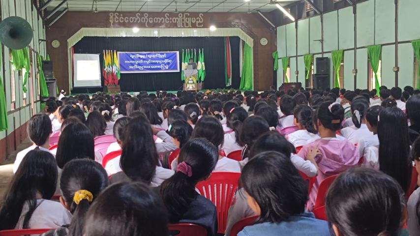 အမှတ် (၁၂) လူကုန်ကူးမှု တားဆီးနှိမ်နင်းရေး ရဲတပ်ဖွဲ့စု (မြစ်ကြီးနား)မှ ကြီးမှူး၍ လူကုန်ကူးမှု/လူမှောင်ခိုမှုနှင့် ကလေးသူငယ်အခွင့်အရေးများဆိုင်ရာ အသိပညာပေးဟောပြောပွဲကို ကချင်ပြည်နယ်၊ မြစ်ကြီးနားမြို့ အမှတ် (၁) အခြေခံပညာအထက်တန်းကျောင်းရှိ အေးမြသီတာခန်းမ၌ ကျင်းပသည်။