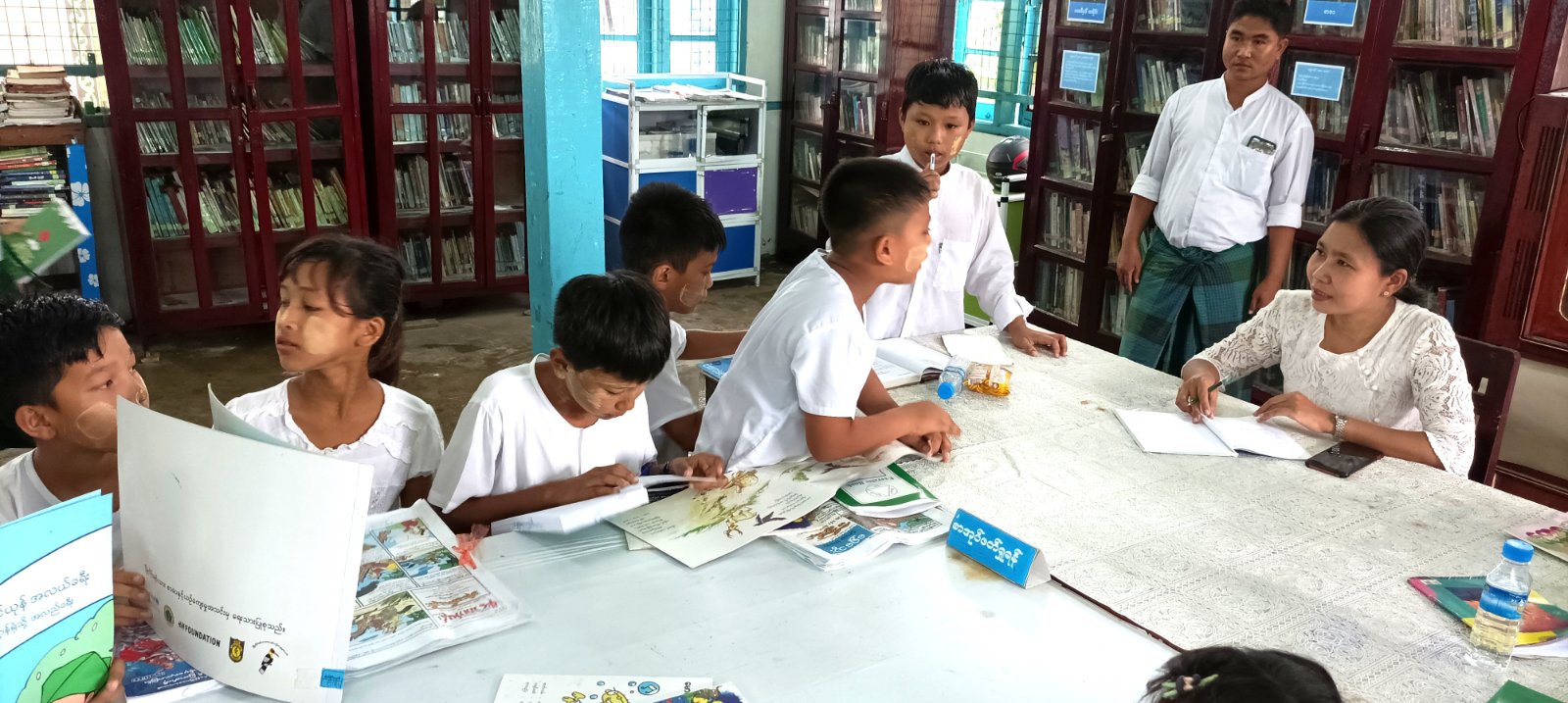 ရှေ့ဦးစွာ ပြန်ကြားရေးနှင့်ပြည်သူ့ဆက်ဆံရေးဦးစီးဌာန၊ စစ်တွေခရိုင်ရုံးမှ လက်ထောက်ညွှန်ကြားရေးမှူး ဒေါ်ဇာဇာထွန်းက ကျောင်းသား/ သူများအား စာအုပ်၊ စာပေဖတ်ရှုရခြင်း အကျိုးတရားအား ရှင်းလင်းပြောကြားပြီး မိမိတို့ကြိုက်နှစ်သက်မည့် စာအုပ်စာစောင်များအား ဖတ်ရှု လေ့လာနိုင်ကြောင်းနှင့် နောင်ကိုလည်း ပြည်သူ့စာကြည့်တိုက်သို့ စာအုပ်စာစောင်များကို လာရောက်ငှားရမ်းဖတ်ရှုနိုင်ပါကြောင်း ပြောကြားခဲ့သည်။