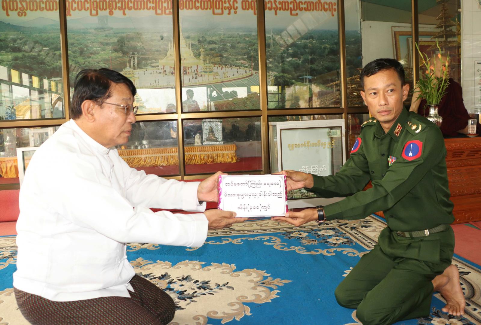 ထိုသို့ ရဟန္တာတစ်ထောင်ရှင်ပင်မြတ်စွာ ရွှေမိုးတောင်စေတီတော်မြတ်ကြီးအား ရွှေသားရွှေစင်၊ ရွှေသင်္ကန်း ပြန်လည်ကပ်လှူနိုင်ရေးအတွက် တပ်မတော် (ကြည်း၊ ရေ၊ လေ) မိသားစုများက စုပေါင်း လှူဒါန်းသည့် ငွေကျပ်သိန်း ၃၀၀ ကို အလှူရှင်များကိုယ်စား မြောက်ပိုင်းတိုင်းစစ် ဌာနချုပ်၊ တိုင်းဦးစီးချုပ် ဗိုလ်မှူးကြီးမောင်မောင်မြင့်က လှူဒါန်းရာ ဘဏ္ဍာငွေရှာဖွေရေး ဆပ်ကော်မတီဥက္ကဋ္ဌ၊ ပြည်နယ်အစိုးရအဖွဲ့ဝင် စီးပွား ရေးရာဝန်ကြီး ဦးမျိုးဆွေက လက်ခံရယူပြီး ဂုဏ်ပြုမှတ်တမ်းလွှာကို ပြန်လည်ပေးအပ်ခဲ့ကြသည်။