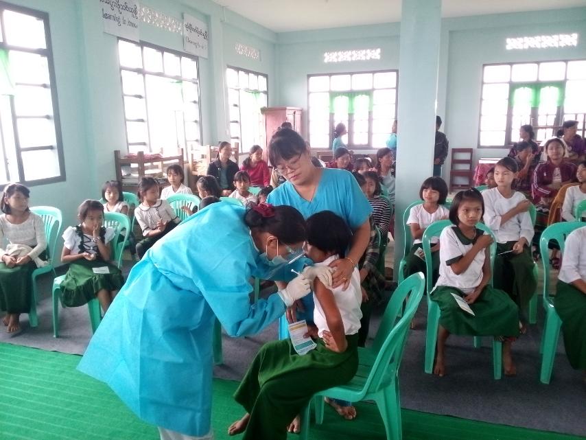 အဆိုပါ ကာကွယ်ဆေးထိုးနှံခြင်းဆောင်ရွက်ရာသို့ မြို့နယ်မိခင်နှင့်ကလေးကျန်းမာရေးဌာန၊ မြို့နယ်ကျန်းမာရေးမှူး အဆင့်(၁)ဒေါ်ဂျေလုဂျာ၊ မြို့နယ်ဘက်စုံ သားဖွားဆရာမ ဒေါ်ဘောက်ဆိုင်းနှင့် တာဝန်ရှိသူများ၊ အခြေခံပညာ အထက်တန်းကျောင်းအုပ် ဦးခိုင်မင်းအောင်နှင့် ဆရာ/ဆရာမများ၊ မြို့နယ် အမျိုးသမီးရေးရာ/ မိခင်နှင့် ကလေးစောင့်ရှောက်ရေး အသင်းအဖွဲ့များ၊ အုပ်ထိန်းသူ မိဘများ၊ ကျောင်းသူများပါဝင်ခဲ့ကြောင်း သိရသည်။
