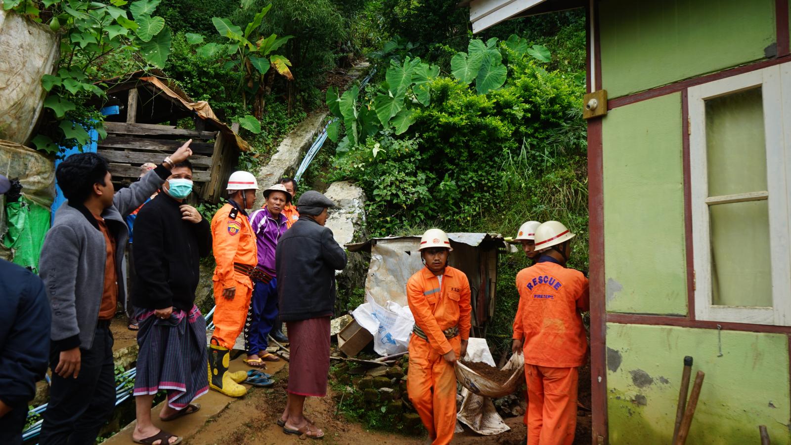 မြေပြိုကျမှုအား မီးသတ်တပ်ဖွဲ့ဝင်များ၊ရဲတပ်ဖွဲ့ဝင်များ၊ရပ်ကွက်နေပြည်သူများက မြေစာများဖယ် ရှားရှင်းလင်းခြင်းဆောင်ရွက်ကြရာ ဖလမ်းခရိုင်စီမံအုပ်ချုပ်ရေးအဖွဲ့ဥက္ကဋ္ဌ ဦးစောထွန်းဝင်း၊ အဖွဲ့ဝင် (၁) ဒုတိယဗိုလ်မှူးကြီးဝင်းဇော်လတ်နှင့် အဖွဲ့ဝင်များ၊ မြို့နယ်စီမံအုပ်ချုပ်ရေးဥက္ကဋ္ဌနှင့် အဖွဲ့ဝင်များက ကြည့်ရှုစစ်ဆေးခဲ့ကြပြီး လိုအပ်သည်များ ကူညီဆောင်ရွက်ပေးခဲ့ကြသည်။