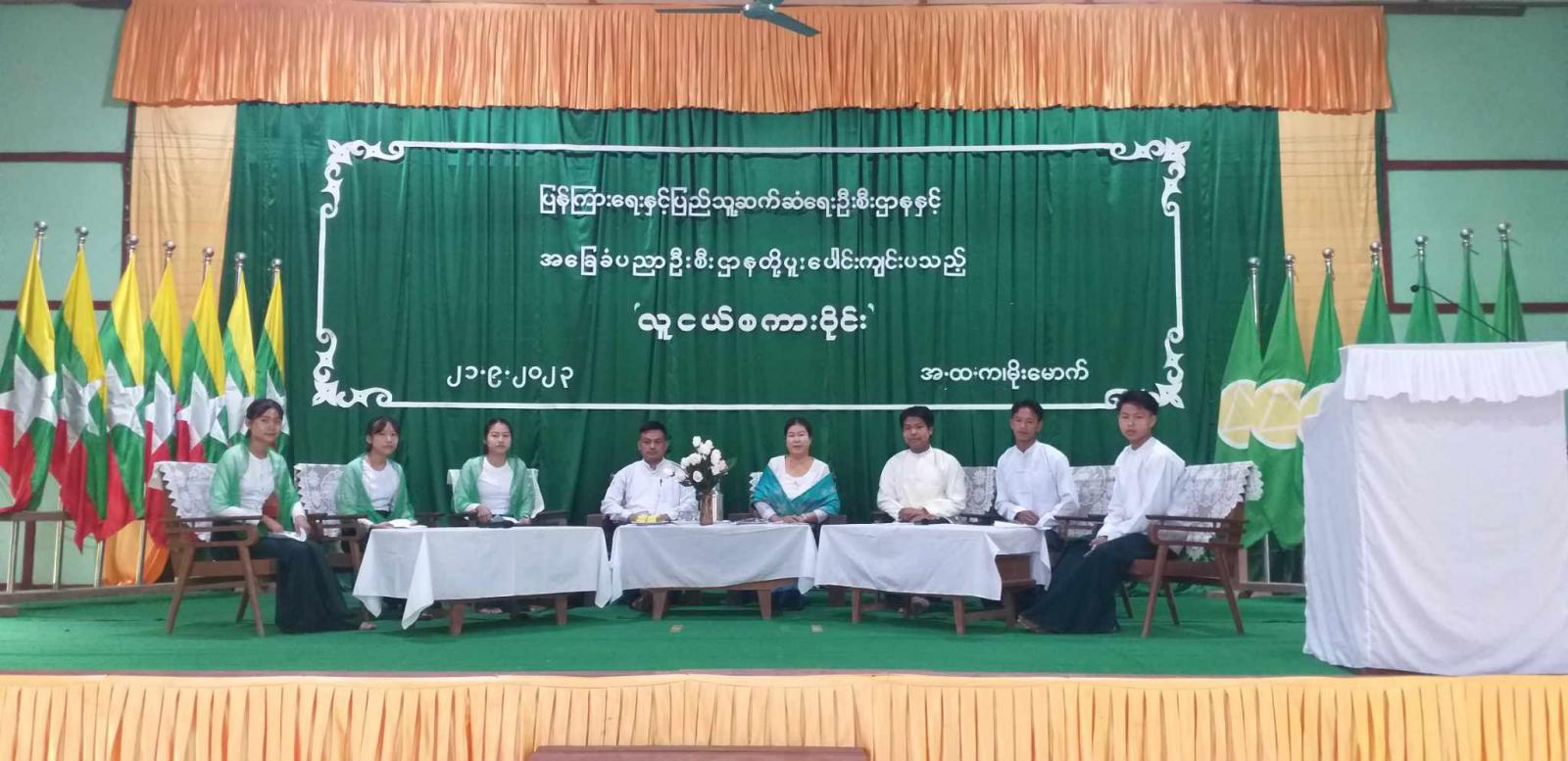 ကချင်ပြည်နယ်၊ ဗန်းမော်ခရိုင်၊ မိုးမောက်မြို့ မြို့နယ်ပြန်ကြားရေးနှင့်ပြည်သူ့ဆက်ဆံရေးဦးစီးဌာနနှင့် အခြေခံပညာဦးစီးဌာနတို့ပူပေါင်းကျင်းပသည့် လူငယ်စကားဝိုင်းဆွေးနွေးပွဲကို ယမန်နေ့နံနက် (၁၀)နာရီတွင် အ.ထ.က(မိုးမောက်) ပညာရတနာခန်းမ၌ ကျင်းပပြုလုပ်ခဲ့သည်။