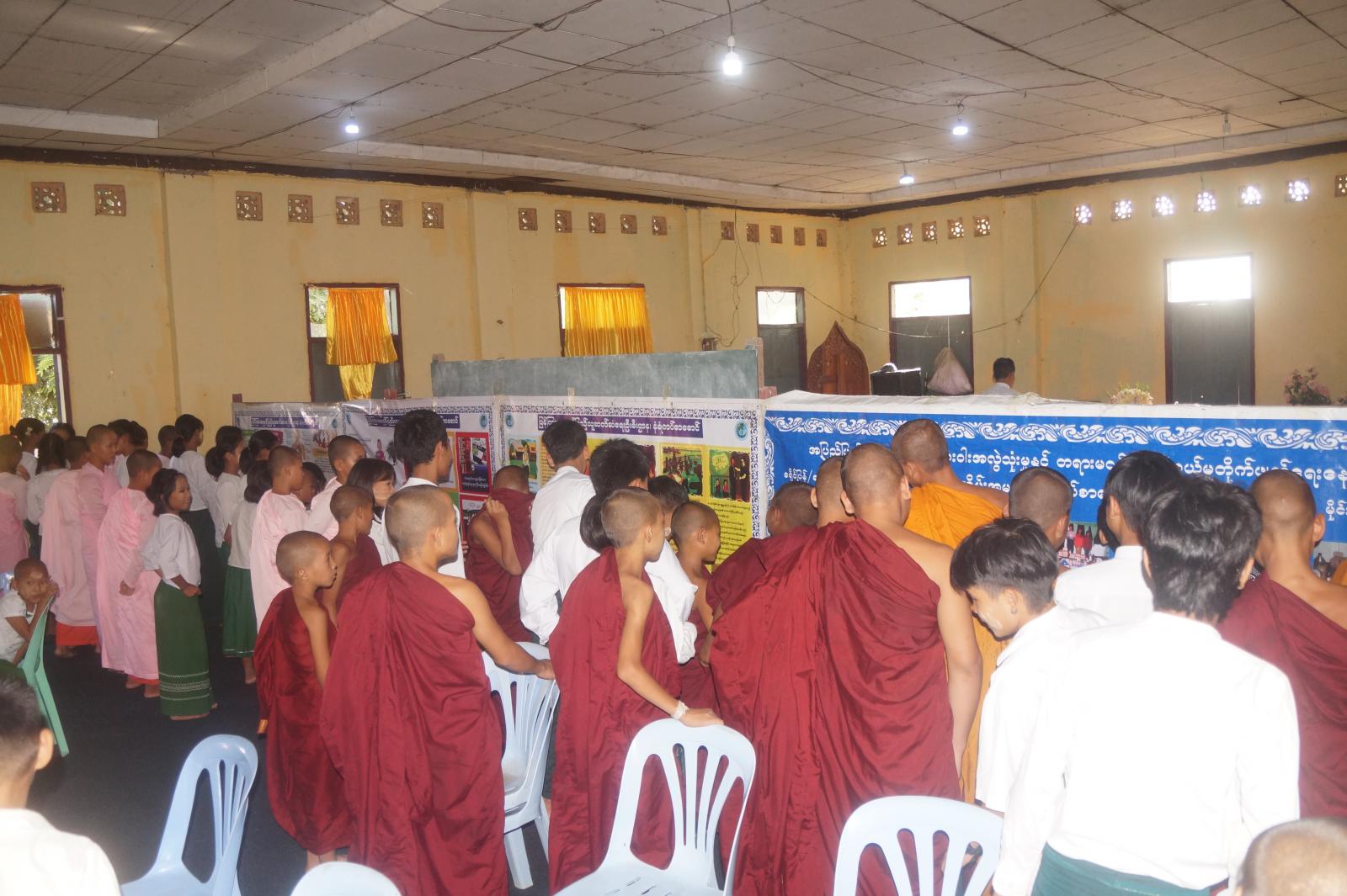 ဆက်လက်၍ ပြန်ကြားရေးနှင့်ပြည်သူ့ဆက်ဆံရေးဦးစီးဌာနမှ ပြသထားသည့် လူကုန်ကူးမှုတားဆီးကာကွယ်ရေး အသိပညာပေး နံရံကပ်စာစောင်၊ ကလေးအလုပ်သမားပပျောက်ရေး အသိပညာပေးနံရံကပ် စာစောင်၊ မူးယစ်ဆေးဝါးသုံးစွဲခြင်း၏ ဆိုးကျိုး အသိပညာပေး နံရံကပ်စာစောင်များကို သဗ္ဗညုဘုန်းတော်ကြီးသင် ပညာရေးကျောင်းမှ ကျောင်းသား၊ ကျောင်းသူများ၊ ရှင်သာမဏေများနှင့် သီလရှင်များက စိတ်ပါဝင်စားစွာ လေ့လာကြည့်ရှုခဲ့ကြပြီး ခင်းကျင်းပြသထားသည့် သုတ၊ ရသ၊ စာအုပ်စာစောင်များကိုလည်း ငှားရမ်းဖတ်ရှုခဲ့ကြောင်း သိရသည်။