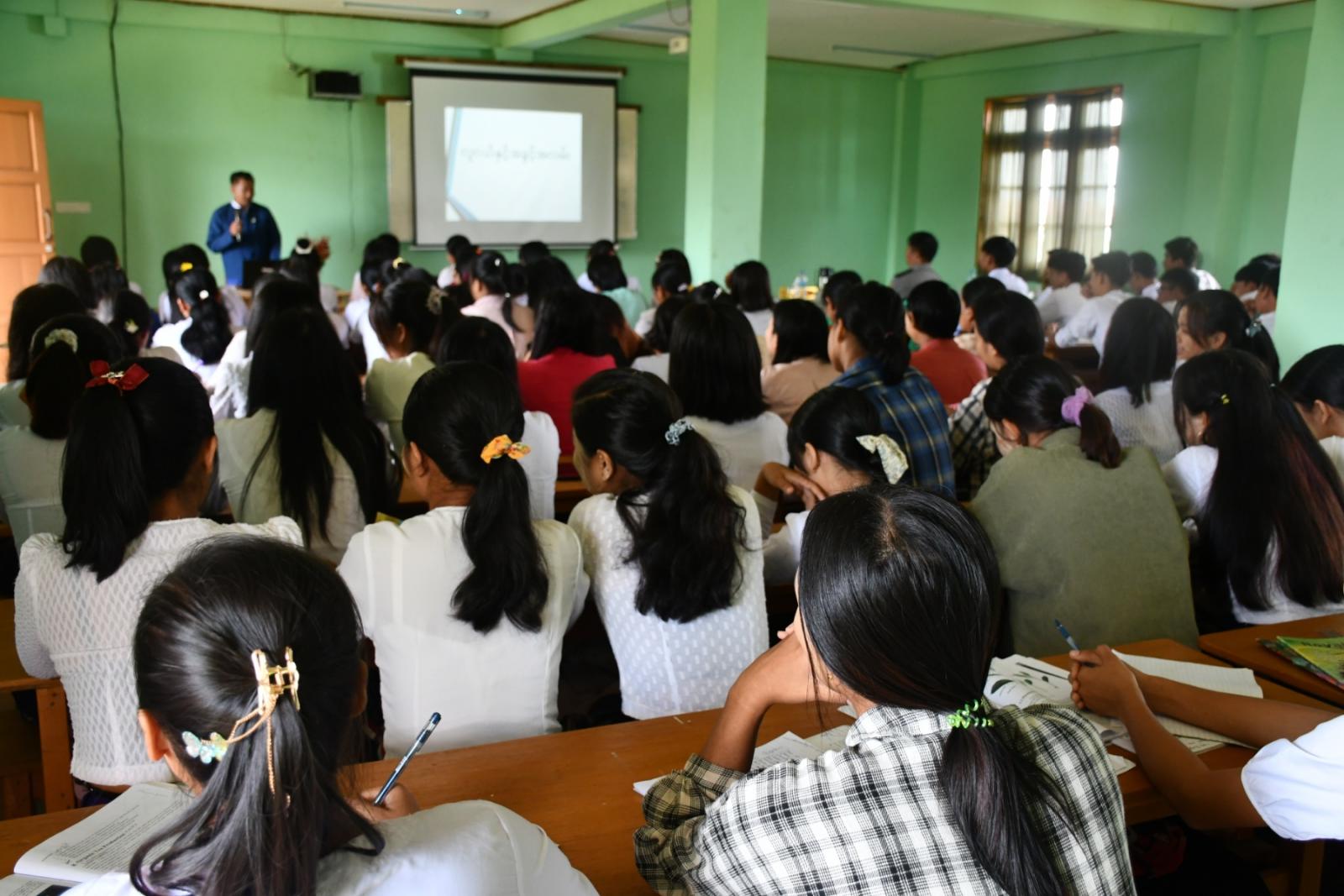 ဆက်လက်၍ ဟုမ္မလင်းမြို့နယ် လူမှုဝန်ထမ်းဦးစီးဌာန ဦးစီးအရာရှိ ဦးလှဆိုင်းက ကလေးသူငယ်အခွင့်အရေးများဆိုင်ရာဥပဒေအကြောင်း အသိပညာပေးဟောပြောခဲ့ပြီး အမှတ်(၉)မူးယစ်တပ်ဖွဲ့စု ဟုမ္မလင်း၊ ခေတ္တတပ်ဖွဲ့စုမှူး ဒု-ရဲမှူးမြင့်အောင်က ဟုမ္မလင်းကောလိပ် ကျောင်းသား၊ ကျောင်းသူများအား မူးယစ်ဆေးဝါးနှင့် စိတ်ကိုပြောင်းလဲစေသော ဆေးဝါးများအန္တရာယ်နှင့်ပတ်သက်၍ ပြဌာန်းထားသည့် ပြစ်မှုပြစ်ဒဏ်များ အကြောင်းနှင့်ပတ်သတ်၍ Power Point ဖြင့် အသိပညာပေး ဟောပြောခဲ့ကြကြောင်းသိရသည်။