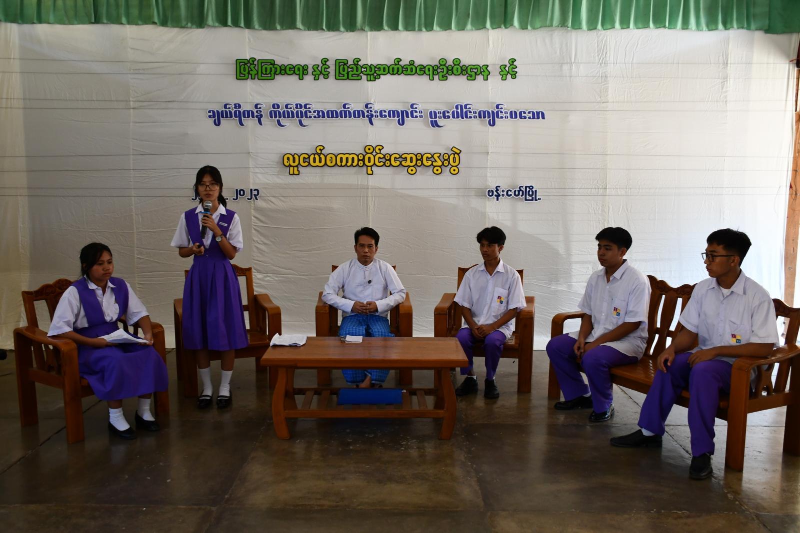 ရှေးဦးစွာ ဒုတိယမြို့နယ် ပညာရေးမှူး ဦးထွန်းထွန်းဦးက အဖွင့်အမှာစကားပြောကြားပြီး ဗန်းမော် ခရိုင်ပြန်ကြားရေးနှင့်ပြည်သူ့ ဆက်ဆံရေးဦးစီးဌာန၊ လက်ထောက်ညွှန်ကြားရေးမှူး ဦးအောင်ကျော်ထွန်းက "ကျောင်းသား၊ ကျောင်းသူ လူငယ်များအား ကျောင်းစာအပြင် ပြင်ပဗဟုသုတ ရရှိမည့်စာကောင်းပေမွန်များကို လေ့လာဖတ်ရှုသည့် အလေ့အကျင့်ကောင်းများရရှိ လာစေ ရန်နှင့် ဗလငါးတန်ဖွံ့ဖြိုးလာစေရန် ရည်ရွယ်ချက်များဖြင့် လူငယ်စကားဝိုင်းကျင်းပရ ခြင်းဖြစ်ကြောင်း" ရှင်းလင်းပြောကြားသည်။ ထို့နောက်ချယ်ရီတန်ကိုယ်ပိုင်အထက်တန်းကျောင်း တည်ထောင်သူ ဒေါ်နီလာမေလင်းက ကျေးဇူးတင်စကားပြောကြားသည်။