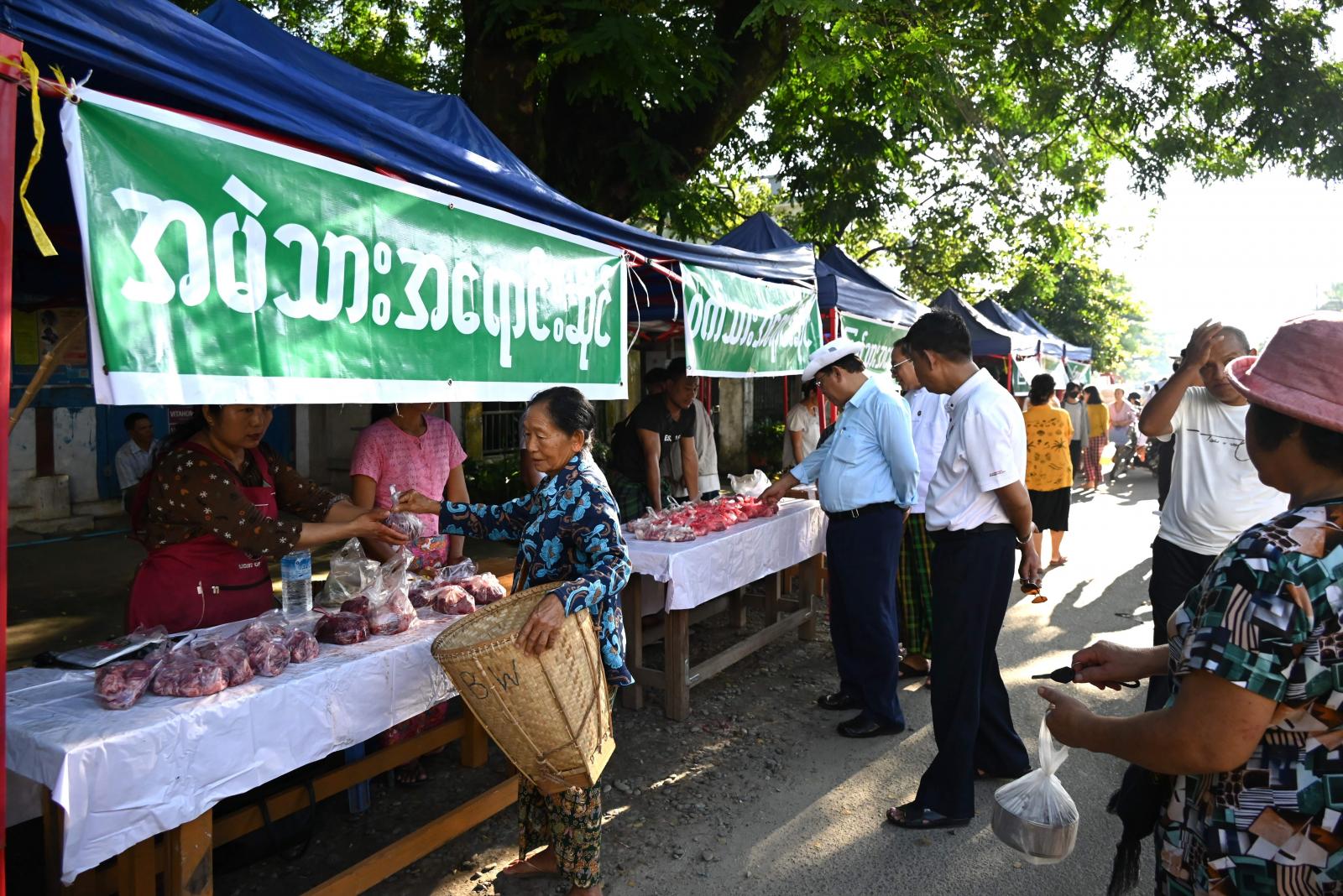ပြည်သူများ စားဝတ်နေရေး အဆင်ပြေစေရေးနှင့် ကုန်ဈေးနှုန်းကြီးမြှင့်မှုကို ထိန်းချုပ်၍ ပြည်သူများ ဝန်ထုပ်ဝန်ပိုးမဖြစ်ပေါ်စေရေး ကချင်ပြည်နယ်အစိုးရအဖွဲ့၏စီမံမှုဖြင့် မြစ်ကြီးနားမြို့ အပါအဝင် ခရိုင်မြို့ကြီးများအားလုံးတွင် အခွန်လွတ်ဈေး၊ သက်သာဈေးများ ဖွင့်လှစ်၍ ပြင်ပပေါက် ဈေးနှုန်းထက် ပိုမိုချိုသာသောဈေးနှုန်းဖြင့် ရောင်းချပေးလျက်ရှိရာ ယမန်နေ့နေ့ နံနက်ပိုင်းတွင် မြစ်ကြီးနားမြို့၊ ဒူကထောင်ရပ်ကွက်ဈေး၌ အခြေခံစားသောက်ကုန်များကို ရောင်းချပေးခဲ့သည်။