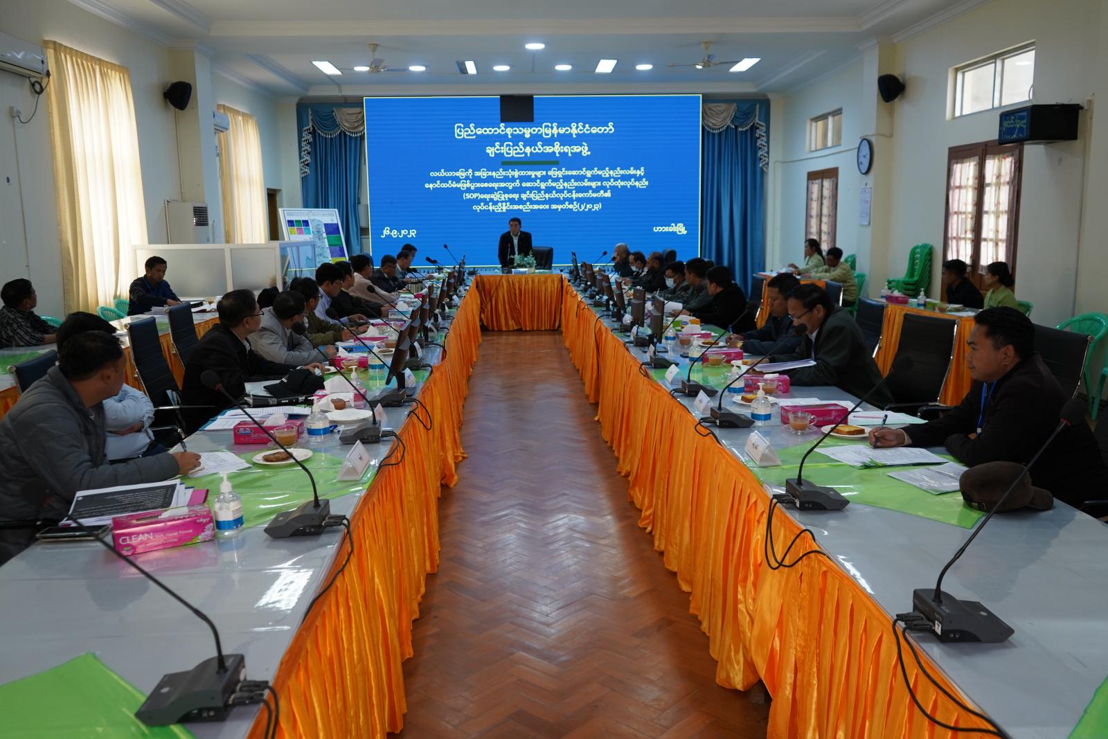 ထို့နောက် လယ်ယာမြေကို အခြားနည်းသုံးစွဲထားမှုများ ဖြေရှင်းဆောင်ရွက်မည့် နည်းလမ်းနှင့် နောင်ထပ်မံမဖြစ်ပွားစေရေးအတွက် ဆောင်ရွက်မည့်နည်းလမ်းများ လုပ်ထုံးလုပ်နည်းစံနှုန်း (SOP) မူကြမ်းရေးဆွဲပြုစုရေး၊ ချင်းပြည်နယ်ကော်မတီအဖွဲ့ဝင်၊ ဟားခါးခရိုင် အထွေထွေအုပ်ချုပ်ရေးဦးစီးဌာန၊ ဒုတိယညွှန်ကြားရေးမှူး ဦးကျော်စွာမင်းနှင့် ပြည်နယ်လယ်ယာမြေစီမံခန့်ခွဲရေးနှင့် စာရင်းအင်းဦးစီးဌာနမှ ဒုတိယညွှန်ကြားရေးမှူး ဦးညွှန့်ဝင်းတို့က SOP မူကြမ်းကို Power Point ဖြင့် အသေးစိတ် ရှင်းလင်းတင်ပြကြသည်။
