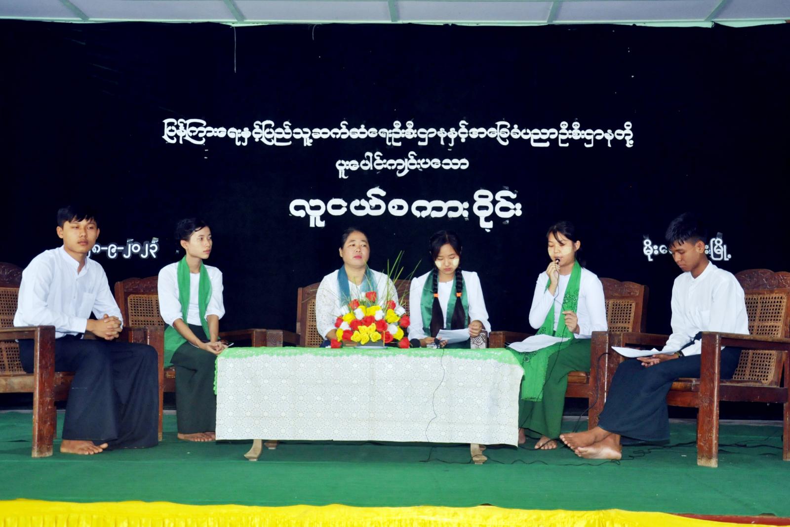 ဆက်လက်၍ လူငယ်စကားဝိုင်းကျင်းပရာ ဦးဆောင်ဆွေးနွေးသူအဖြစ် ပြန်ကြားရေးနှင့်ပြည်သူ့ဆက်ဆံရေးဦးစီးဌာနဦးစီးအရာရှိက ဆောင်ရွက်ပြီး Grade 11 မှ မောင်ဖြိုးအောင်က လူငယ်နှင့်စည်းကမ်း၊ Grade 10 မှ မောင်မင်းသန့်မောင်က လူငယ်နှင့်အားကစား၊ Grade 11 မှ မမေမြတ်နိုးခင်က လူငယ်နှင့်ပညာရေး၊ Grade 10 မှမခိုင်သဇင်ကျော်က လူငယ်နှင့်ယဉ်ကျေးမှု၊ Grade 10 မှ မအေးသန္တာကျော်က လူငယ်နှင့်စာဖတ်ခြင်း စသည်ခေါင်းစဉ်များဖြင့် အသီးသီး ဆွေးနွေးကြသည်။