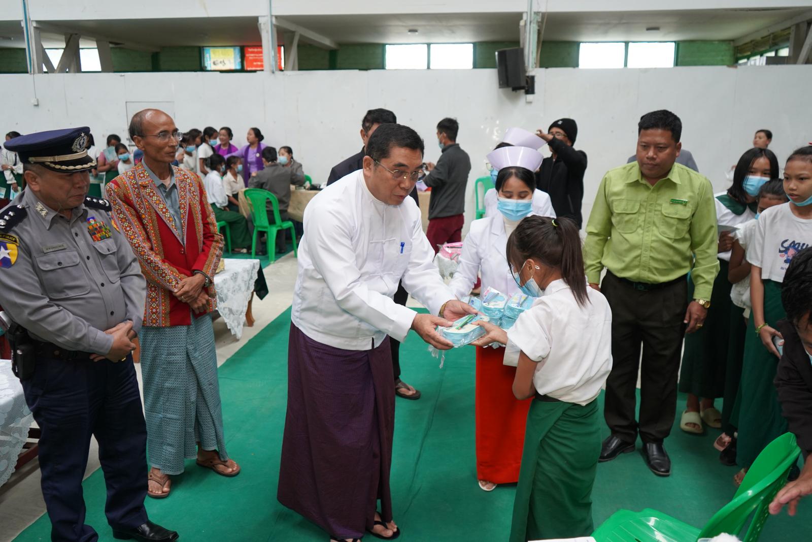 ယင်းနောက် အသက် (၉) နှစ်ပြည့်ပြီး (၁၂)နှစ်မကျော်သော မိန်းကလေးငယ်များအား သားအိမ်ခေါင်းကင်ဆာရောဂါကာကွယ်ဆေး ထိုးနှံပေးနေမှုကို ပြည်နယ်ဝန်ကြီးချုပ်က လှည့်လည်ကြည့်ရှုအားပေးပြီး ကျောင်းသူလေးများကို လက်ဆောင်ပစ္စည်းများပေးအပ်ကာ ကျန်းမာရေး ဝန်ထမ်းများနှင့် ကျောင်းသူကလေးငယ်များအား အားပေးစကားပြောကြားခဲ့ကြောင်း သိရသည်။