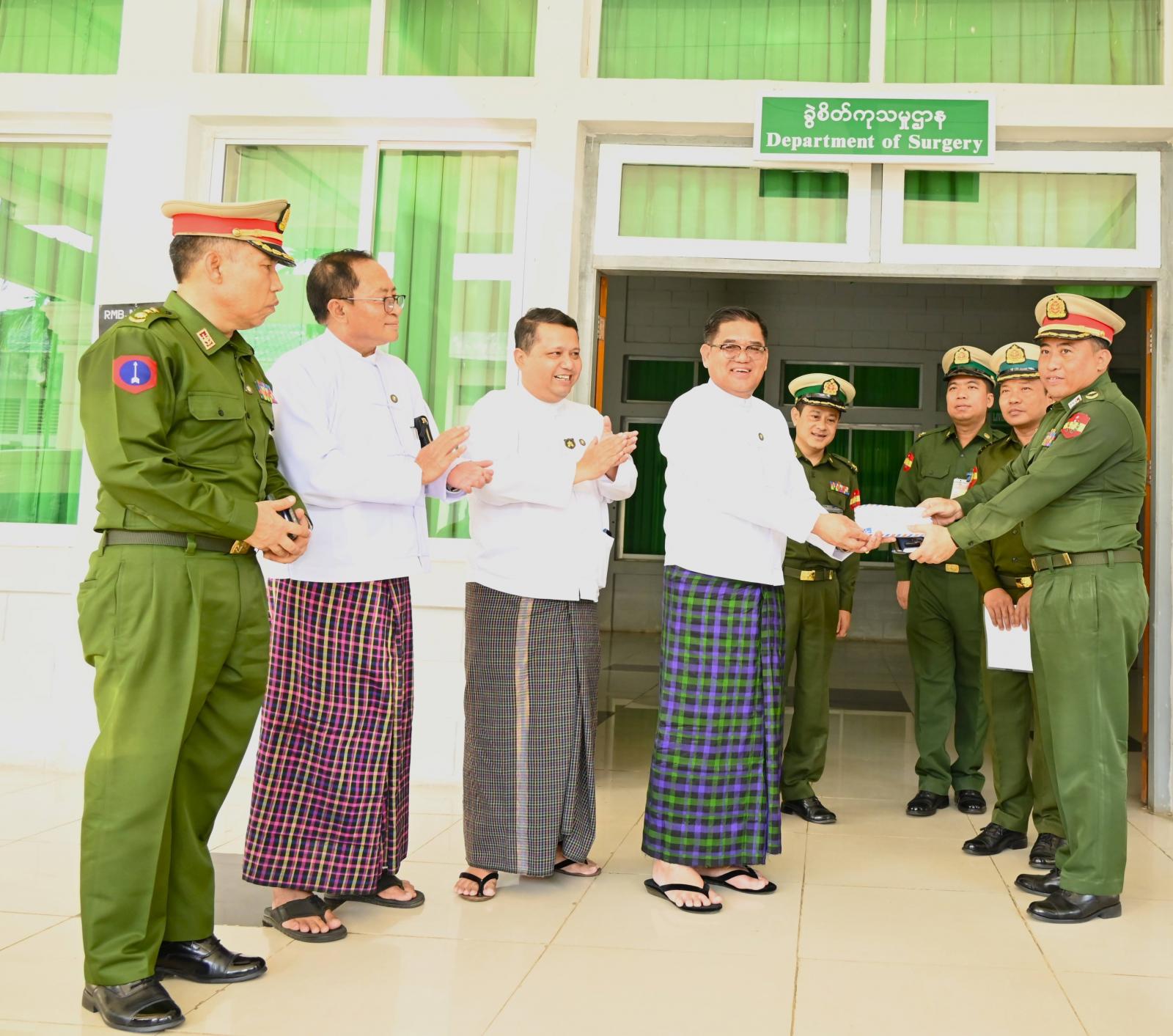 ထိုသို့ သွားရောက်တွေ့ဆုံအားပေးထောက်ပံ့ရာတွင် ပြည်နယ်ဝန်ကြီးချုပ်သည်၊ မြောက်ပိုင်း တိုင်းစစ်ဌာနချုပ်တိုင်းမှူး ဗိုလ်မှူးချုပ်စိုးလှိုင်၊ ဒုတိယတိုင်းမှူး၊ ပြည်နယ်အစိုးရအဖွဲ့ဝင်ဝန်ကြီးများ တပ်မတော်အရာရှိကြီးများနှင့်အတူ အဆိုပါဆေးရုံဆေးကုသဆောင်၌ ဆေးကုသမှုခံယူလျက်ရှိ သော တပ်မတော်သားများအား တွေ့ဆုံအားပေးစကားပြောကြားကာ ဆေးကုသမှုခံယူလျက်ရှိသော လူနာ (၉၂)ဦးအတွက် အာဟာရမုန့်နှင့် ငွေသားတန်ဖိုး စုစုပေါင်းငွေကျပ် (၄၁) သိန်းနှင့် အမှတ်(၁) တပ်မတော်ဆေးရုံ(ကုတင်-၃၀၀)အရာရှိ၊ အရာခံ၊ အကြပ်၊ စစ်သည်များအတွက် ထောက်ပံ့ငွေကျပ် (၁၀)သိန်းတို့ကို ထောက်ပံ့ပေးအပ်ခဲ့ကြောင်း သိရသည်။