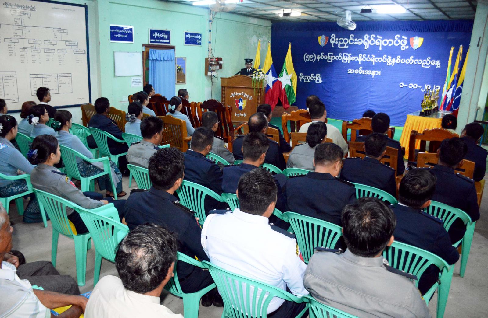 ကချင်ပြည်နယ် မိုးညှင်းခရိုင် မိုးညှင်းမြို့တွင် (၅၉)နှစ်မြောက် မြန်မာနိုင်ငံရဲတပ်ဖွဲ့နေ့ အထိမ်းအမှတ်နှင့် ဂုဏ်ပြုဆုချီးမြှင့်ပွဲအခမ်းအနားကို ယနေ့နံနက် (၉)နာရီက အောင်သပြေရပ်ကွက်ရှိ ခရိုင်ရဲတပ်ဖွဲ့မှူးရုံး အစည်းအဝေးခန်းမ၌ ကျင်းပသည်။