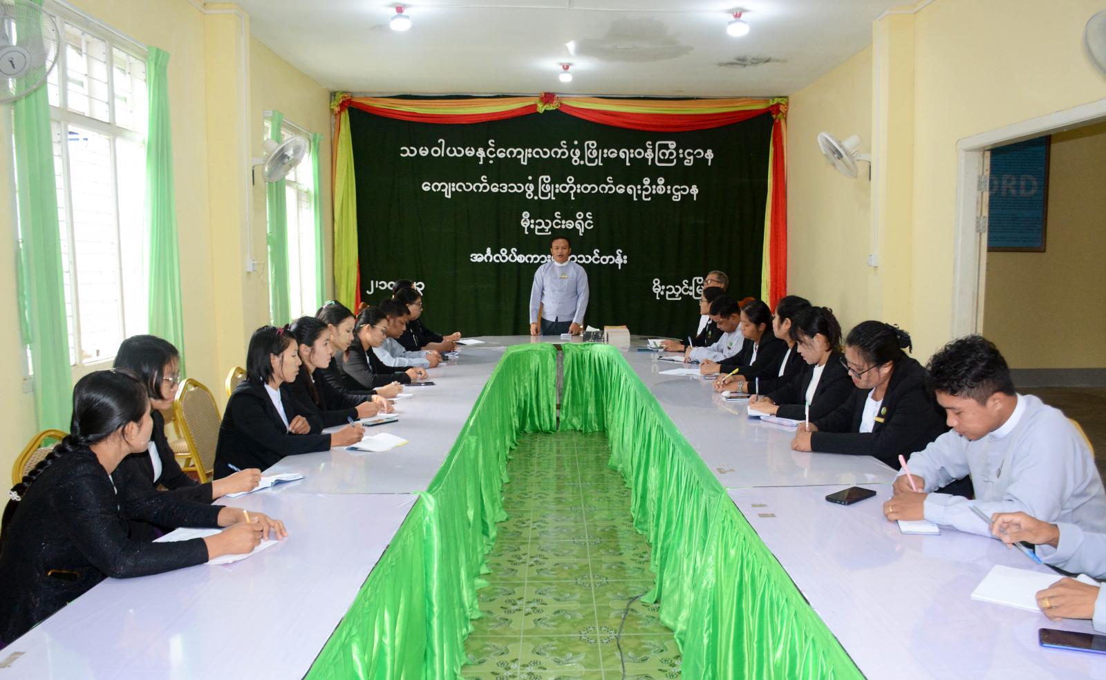 ကချင်ပြည်နယ်၊ မိုးညှင်းခရိုင်၊ မိုးညှင်းမြို့တွင် ခရိုင်ကျေးလက်ဒေသဖွံ့ဖြိုးတိုးတက်ရေးဦးစီးဌာနမှ ဝန်ထမ်းများ စွမ်းဆောင်ရည်မြှင့်တင်ရေး အင်္ဂလိမ်စကားပြော သင်တန်းကို ယနေ့ နံနက် (၁၀)နာရီက ဤဦးစီးဌာန အစည်းအဝေးခန်းမ၌ ဖွင့်လှစ်သည်။