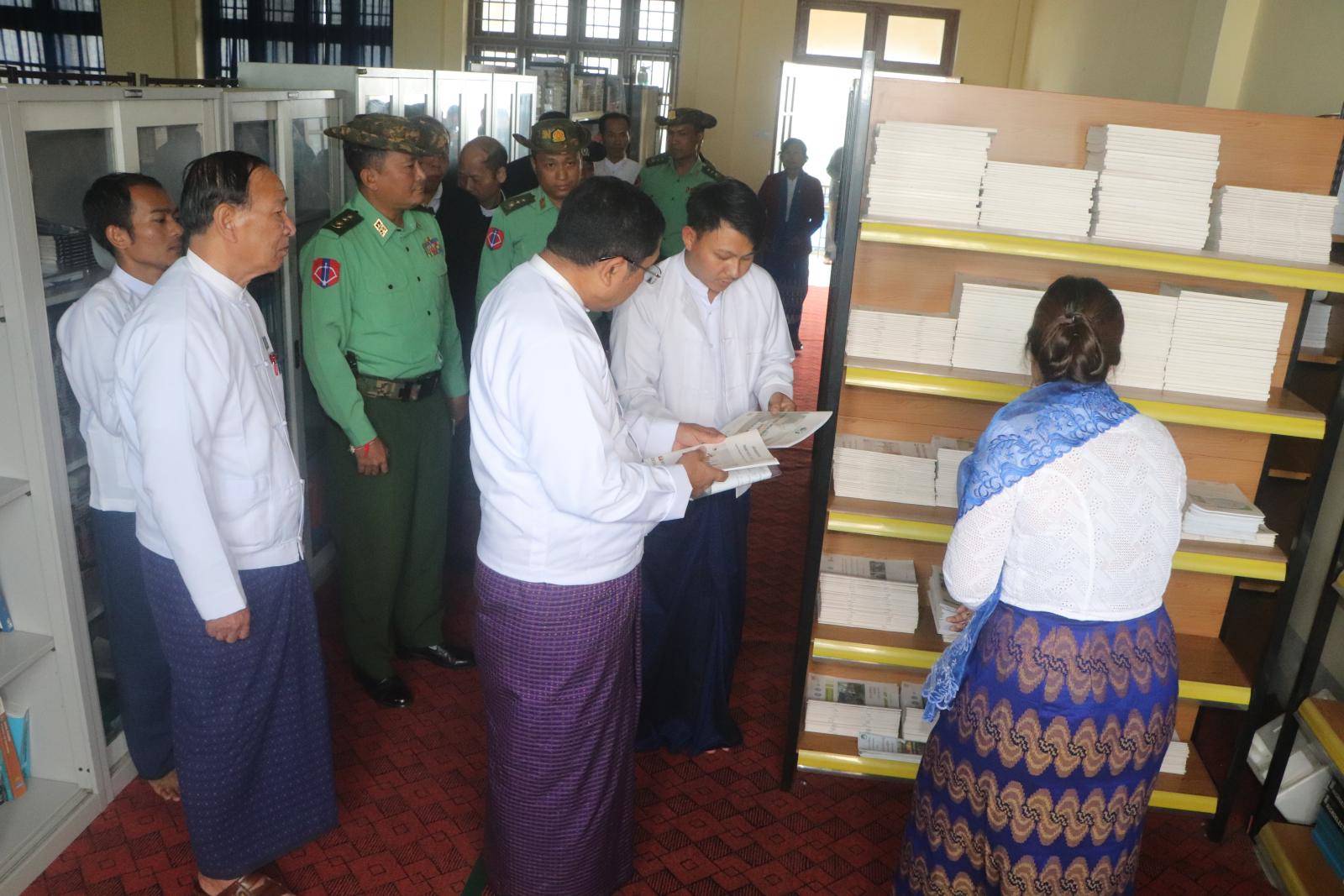 ထို့နောက် အစိုးရစက်မှုလက်မှုသိပ္ပံ (ဟားခါး) ကျောင်းမှ ကျောင်းအုပ်ကြီး ဒေါ်ခင်သူသူထွန်းမှ သိပ္ပံနှင့်နည်းပညာဝန်ကြီးဌာနအကြောင်းကို ရှင်းလင်းတင်ပြပြီး ဝန်ကြီးဌာန၏ လုပ်ငန်းဆောင်ရွက် ချက်များကို Video Clip ဖြင့်ပြသ၍ စုပေါင်းအမှတ်တရ ဓာတ်ပုံရိုက်ကူးကြကာ ပြည်နယ်ဝန်ကြီးချုပ် က ဆရာ/ဆရာမများနှင့် ကျောင်းသား/ကျောင်းသူများအား ရင်းရင်းနှီးနှီး အားပေးစကား ပြောကြား ပြီး အစိုးရစက်မှုလက်မှုကျောင်း စာကြည့်တိုက်အား လှည့်လည်ကြည့်ရှုအားပေးသည်။
