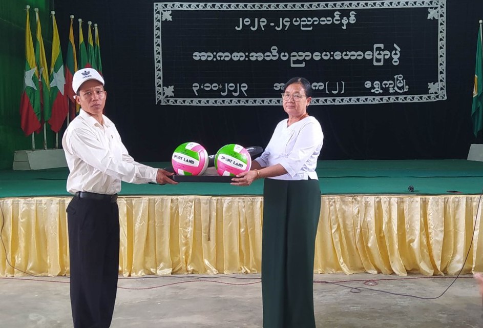 ထို့နောက် မြို့နယ်အားကစားနှင့်ကာယပညာဦးစီးဌာနမှ မြို့နယ်ဦးစီးအရာရှိ ဦးခန့်မျိုးမောင် က အဆိုပါကျောင်းအတွက် အားကစားပစ္စည်းများကို ထောက်ပံ့ပေးအပ်လှူဒါန်းခဲ့ရာ ကျောင်းအုပ် ဆရာမကြီး ဒေါ်ဝင်းဝင်းလှက လက်ခံရယူခဲ့ကြောင်း သိရသည်။