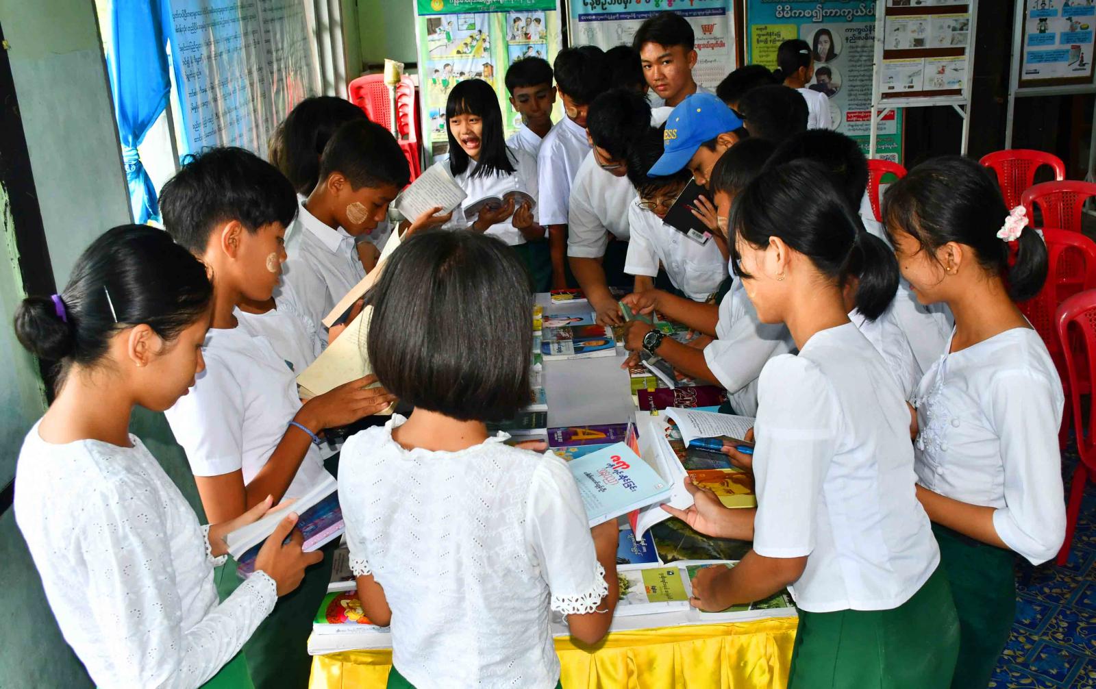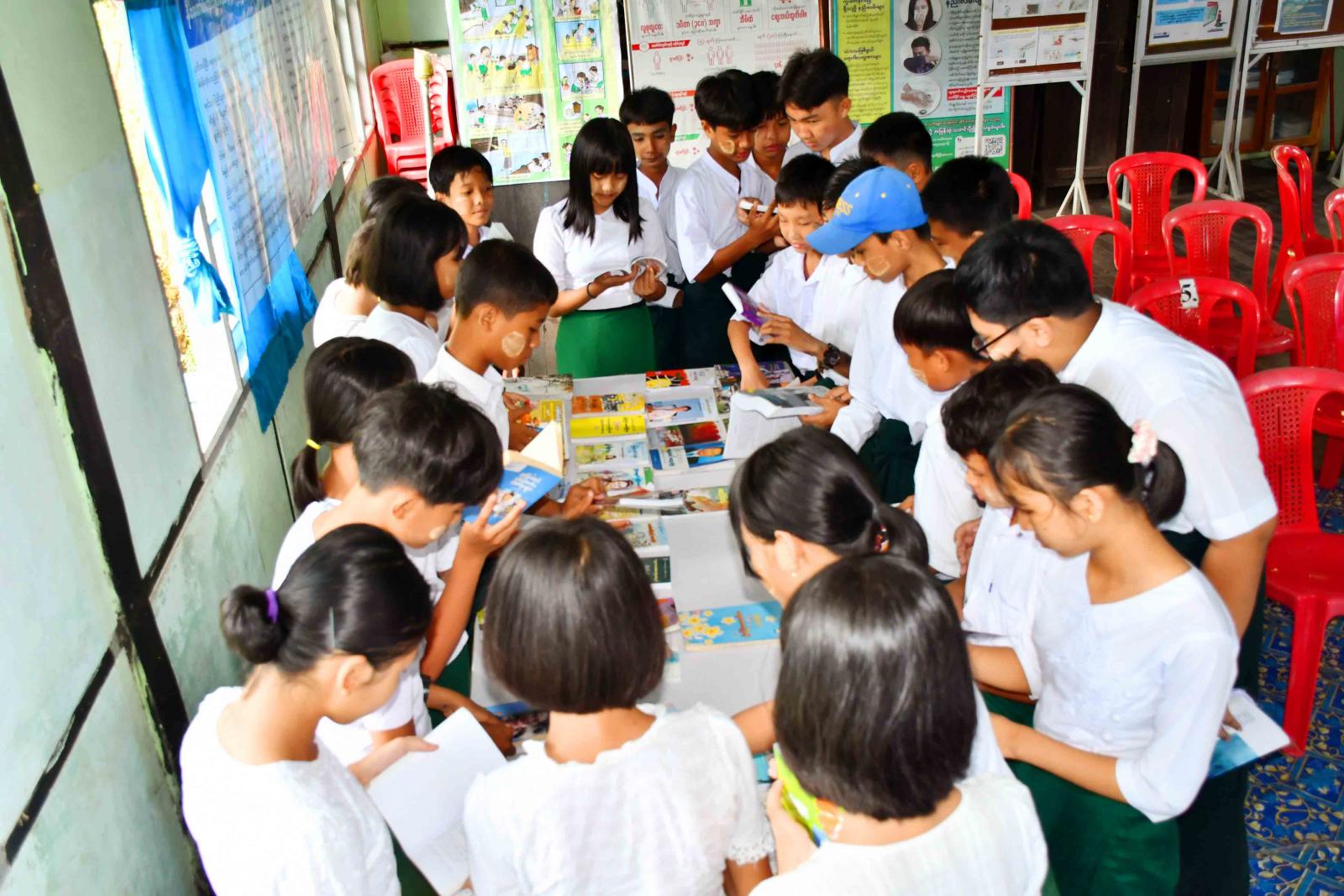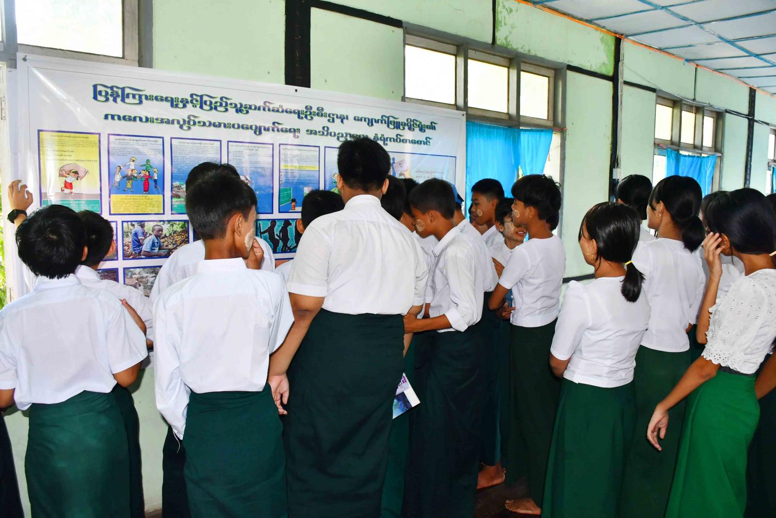 ထို့နောက် အခမ်းအနားသို့တက်ရောက်လာကြသည့် ကျောင်းသား၊ ကျောင်းသူများသည် ပြန်ကြားရေးနှင့်ပြည်သူ့ဆက်ဆံရေးဦးစီးဌာနမှ ခင်းကျင်းပြသထားသည့် နိုင်ငံတော်စီမံအုပ်ချုပ်ရေး ကောင်စီရှေ့လုပ်ငန်းစဉ်(၅)ရပ်၊ ဦးတည်ချက်(၉)ရပ်ပါ အသိပညာပေး နံရံကပ်စာစောင်များ၊ ကလေး အလုပ်သမားပပျောက်ရေး အသိပညာပေး နံရံကပ်ဓာတ်ပုံများ၊ နံရံကပ်စာစောင်များနှင့် စာအုပ်၊ စာစောင်များကို စိတ်ပါဝင်စားစွာဖြင့် ငှားရမ်းကြည့်ရှုခဲ့ကြောင်း သိရသည်။