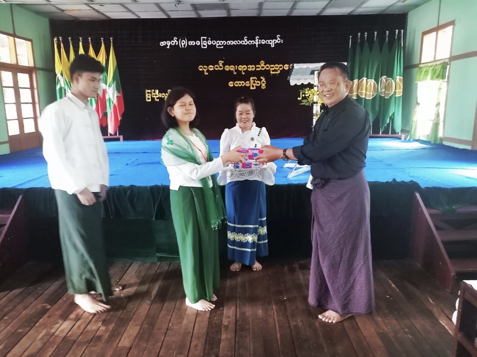 ထို့နောက် လူငယ်ရေးရာအသိပညာပေးဟောပြောပွဲကို ဆက်လက်ကျင်းပရာ ခရိုင်အားကစားမှူး ဦးအောင်နိုင်ထူးက “ဗလငါးတန်အကြောင်းသိကောင်းစရာ” ခေါင်းစဉ်ဖြင့် လည်းကောင်း၊ စာရေးဆရာ ကိုရွှေအောင်သင်းက “အနာဂတ်ကိုပိုင်စိုးမည့်သူများ” ခေါင်းစဉ်ဖြင့် ဟောပြောဆွေးနွေးပြီး ပြန်လည်ဆွေးနွေးသည့် ကျောင်းသား/ကျောင်းသူများအား အမှတ်တရ လက်ဆောင်များ ပေးအပ်သည်။ ထို့နောက် စာရေးဆရာ ကိုရွှေအောင်သင်းက အ.လ.က (၃) ကျောင်းစာကြည့်တိုက်အတွက် သုတ/ရသစာအုပ် လက်ဆောင်များပေးအပ်ရာ ကျောင်းအုပ်ဆရာမကြီးက လက်ခံရယူပြီး ကျောင်းသူတစ်ဦးက ကျေးဇူးတင်စကားပြောကြားသည်။