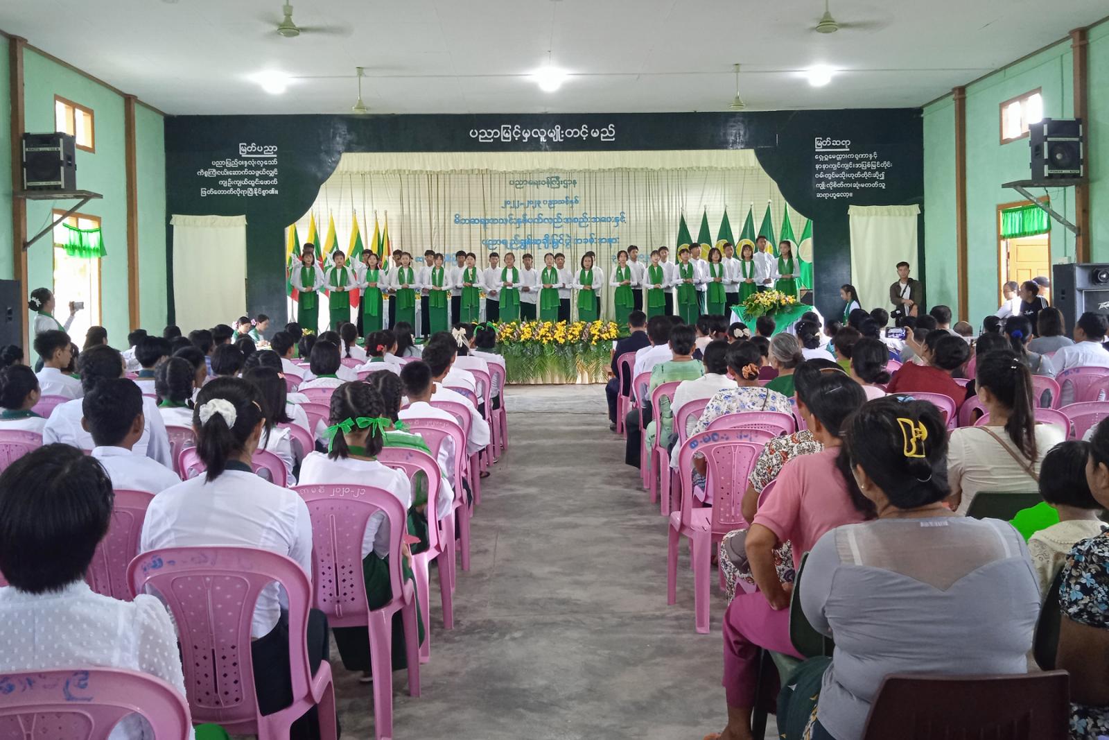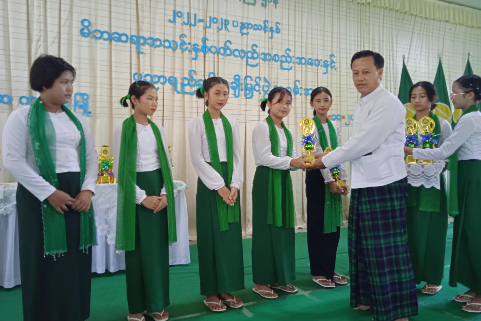 ဆက်လက်၍ ၂၀၂၂-၂၀၂၃ ခုနှစ်၊ ပညာသင်နှစ်အတွင်း ထူးချွန်ဆုရရှိသူ ကျောင်းသား / သူ(၈၆)ဦးတို့အား သက်ဆိုင်ရာတာဝန်ရှိသူများက ဆုများအသီးသီး ချီးမြှင့်ပေးအပ်ခဲ့ကြပြီး Grade-6 ကျောင်းသား/ သူလေးများက “ ကဗျာလွတ်အက ’’ဖြင့် ဖျော်ဖြေတင်ဆက်ခဲ့ကြကြောင်း သိရှိရသည်။