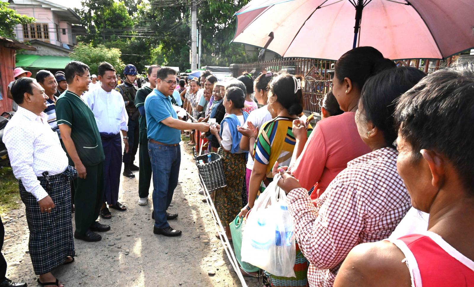 ထိုမှတစ်ဆင့် ပြည်နယ်ဝန်ကြီးချုပ်နှင့် အဖွဲ့သည် ရမ်ပူရပ်ကွက် သက်သာချောင်ချိရေး အခွန်လွတ်စျေးသို့ ရောက်ရှိပြီး ပြည်သူများ စားဝတ်နေရေး အဆင်ပြေစေရေးအတွက် ပြည်နယ်အစိုးရအဖွဲ့၏ စီမံမှုဖြင့် သက်သာစျေးတွင် ကြက်၊ ဝက်၊ အမဲ၊ ငါးများ ရောင်းချပေးနေမှု၊ ဆန်ရောင်းချပေးနေမှု၊ စားသုံးဆီ ရောင်းချပေးနေမှု၊ ကြက်ဥ၊ ဟင်းသီးဟင်းရွက်များအား ပြည်သူများ စနစ်တကျ စီတန်းဝယ်ယူနေမှုတို့ကို ရင်းရင်းနှီးနှီး လိုက်လံအားပေးနှုတ်ဆက်ခဲ့ကြပြီး ဝယ်ယူရာတွင် တွေ့ကြုံရသည့် အခက်အခဲများကို မေးမြန်းဖြေရှင်းပေးကြကာ ပြည်နယ်ဝန်ကြီးချုပ်က ပြည်သူများအဆင်ပြေ လွယ်ကူစွာ ဝယ်ယူနိုင်ရေး စီမံဆောင်ရွက်ပေးသွားရန်၊ စားသုံးဆီများအား ရပ်ကွက်နေပြည်သူအားလုံး ဝယ်ယူရရှိနိုင်ရေး စနစ်တကျ ရောင်းချပေးရန်၊ ဟင်းသီးဟင်းရွက်နှင့် သား/ငါးများ အား စားသုံးသူအန္တရာယ် ကင်းရှင်းစေရေး စစ်ဆေးဆောင်ရွက်ပြီးမှ ရောင်းချသွားနိုင်ရေး တာဝန်ရှိသူများအား မှာကြားခဲ့ကြောင်း သိရသည်။