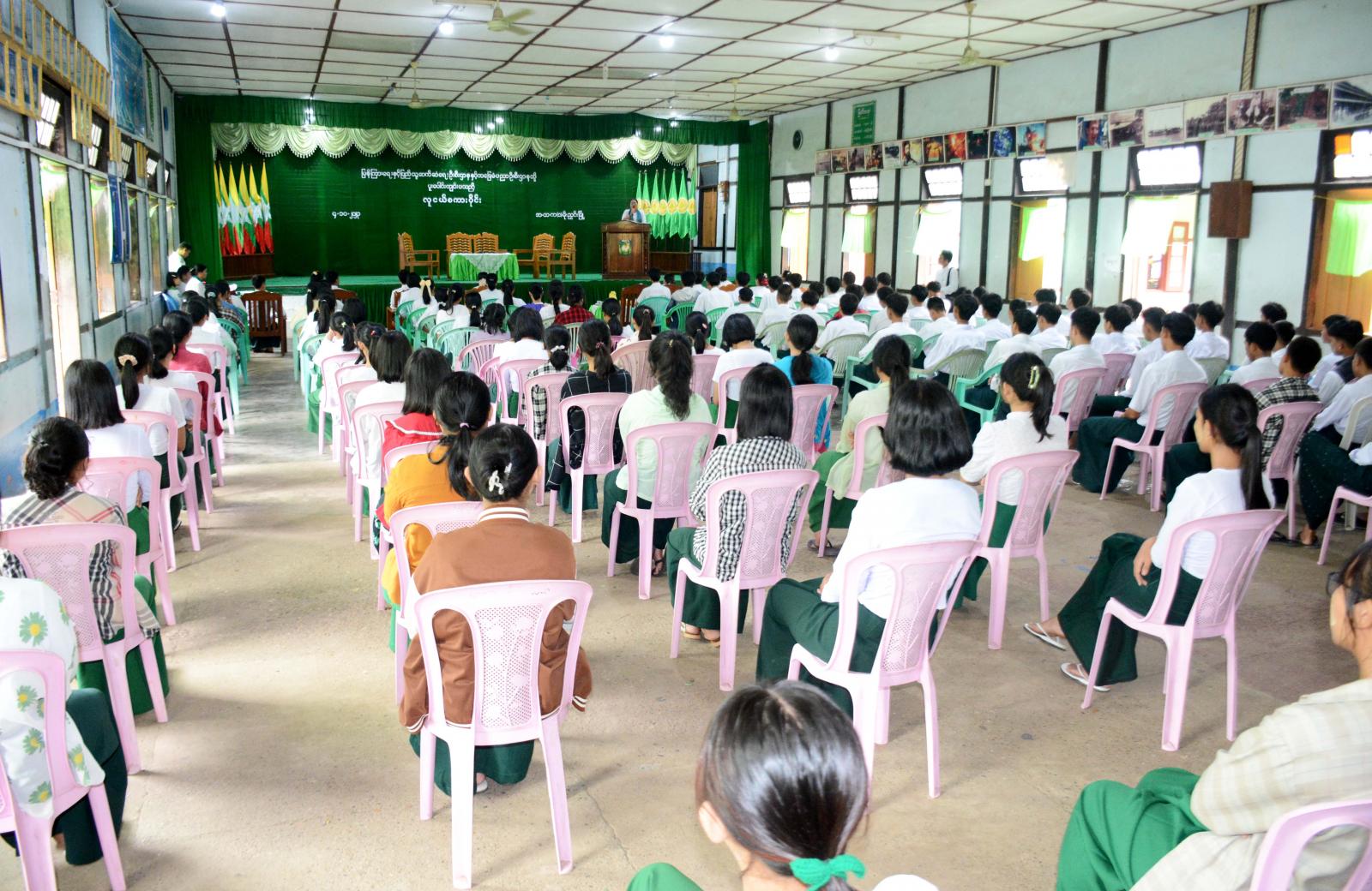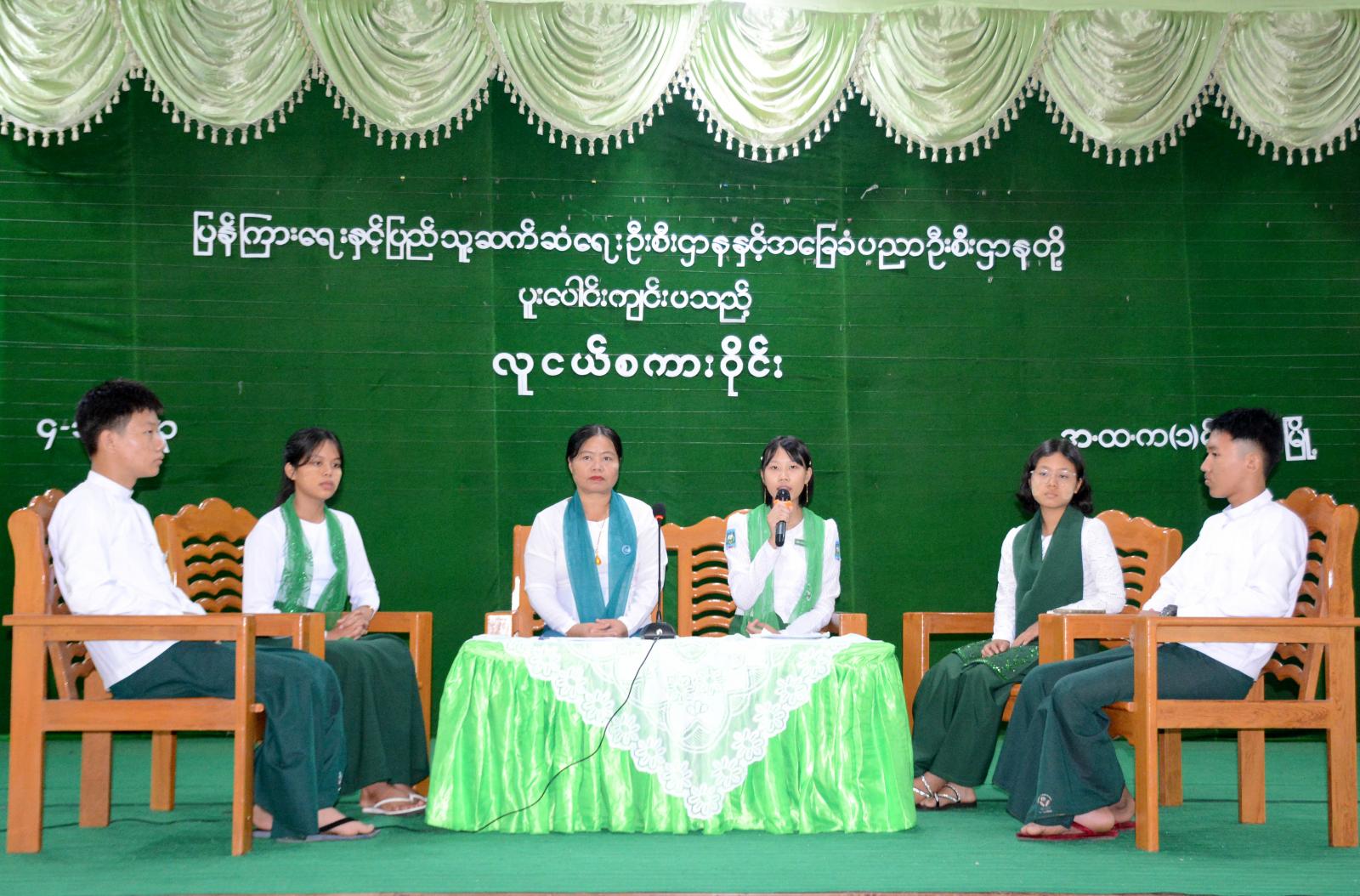 ဆက်လက်၍ လူငယ်စကားဝိုင်းကျင်းပရာတွင် ဦးဆောင်ဆွေးနွေးသူအဖြစ် ခရိုင်ပြန်ကြားရေးနှင့် ပြည်သူ့ဆက်ဆံရေးဦးစီးဌာနမှ ဦးစီးအရာရှိ ဒေါ်တိုးတိုးမေက စတင်ဆွေးနွေးပြီး အဆိုပါ အခြေခံပညာအထက်တန်းကျောင်း Grade-10 မှ မောင်ခန့်ဇေယျာမင်းက လူငယ်နှင့်စာပေ၊ Grade-9 မှ မမေသော်တာစံက လူငယ်နှင့် မူးယစ်ဆေး၊ Grade-10 မှ မောင်အောင်ကျော်ကျော်မျိုးက လူငယ်နှင့် စာရိတ္တ၊ Grade-11 မှ မနှင်းနန္ဒာအေး လူငယ်နှင့် ဗလငါးတန်နှင့် Grade-12 မှ မနန္ဒာကျော်တင့်က လူငယ်နှင့်ပညာရေး ခေါင်းစဉ်တို့ဖြင့် အသီးသီးဆွေးနွေးကြရာ ကျောင်းသား၊ ကျောင်းသူများမှ သိရှိလို သည်များအား ပြန်လည်မေးမြန်း ဆွေးနွေးခဲ့ကြကြောင်း သိရသည်။