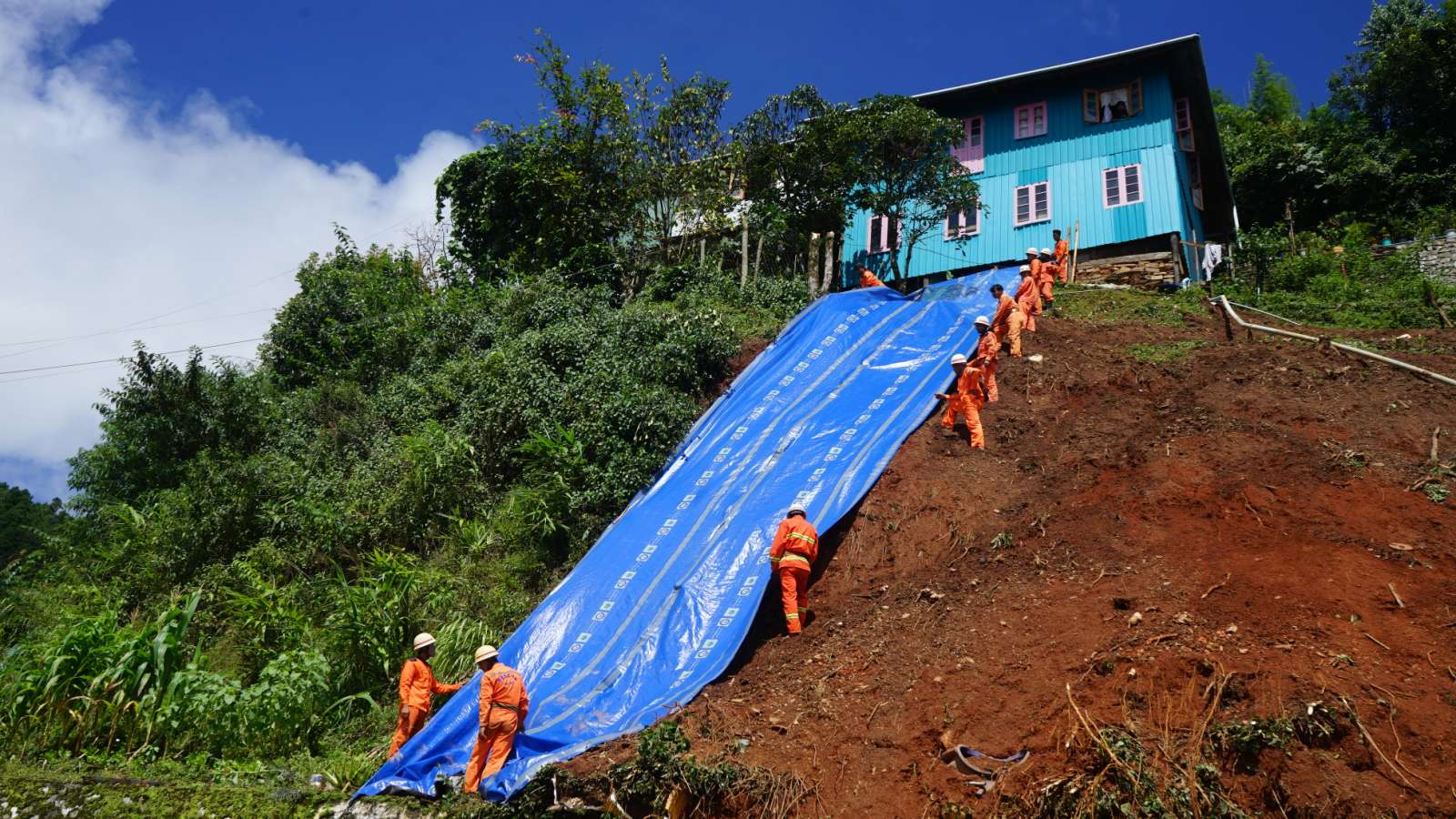 ချင်းပြည်နယ်၊ ဖလမ်းမြို့၌ အောက်တိုဘာလ ၄ ရက်နေ့က မိုးအဆက်မပြတ်ရွာသွန်းမှုကြောင့် မြေပြိုမှုဖြစ်ပွားသည့် လမ်းနှင့်လူနေအိမ်များအား မီးသတ်တပ်ဖွဲ့ဝင်များ၊ လမ်းဦးစီးဌာန၊ ဘေးအန္တရာယ်စီမံခန့်ခွဲ ရေးဦးစီးဌာန၊ စည်ပင်သာယာရေးအဖွဲ့၊ ရပ်ကွက်အုပ်ချုပ်ရေးမှူးနှင့် ရပ်ကွက်နေပြည်သူများက မြေစာများဖယ်ရှားခြင်း၊ အမှိုက်များသိမ်းဆည်းခြင်း၊ မိုးကာများဖုံးအုပ်ခြင်းတို့ဆောင်ရွက်မှုများကို ဖလမ်းခရိုင်စီမံအုပ်ချုပ်ရေးအဖွဲ့ဥက္ကဋ္ဌ ဦးစောထွန်းဝင်း၊ အဖွဲ့ဝင်(၁) ဒုတိယဗိုလ်မှူးကြီးဝင်းဇော်လတ်နှင့်အဖွဲ့ဝင်များက ကြည့်ရှုစစ်ဆေးပြီး လိုအပ်သည်များကူညီ ဆောင်ရွက်ပေးခဲ့ကြောင်း သိရသည်။