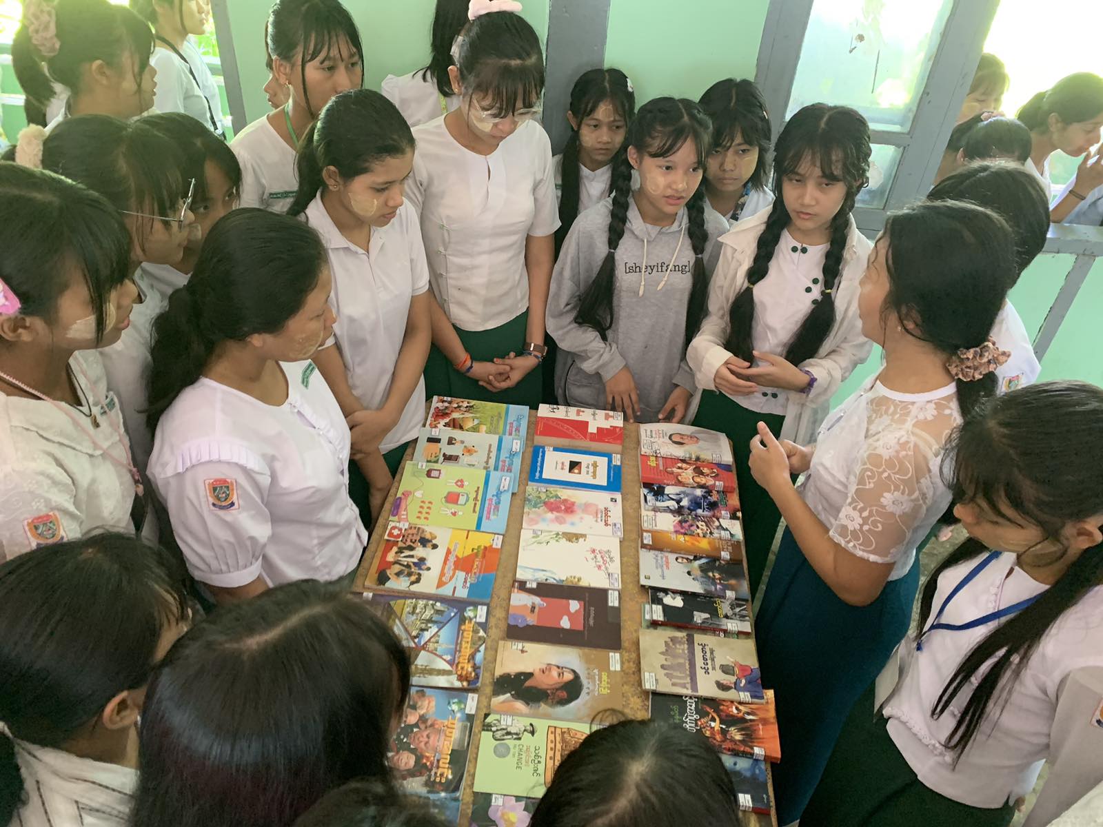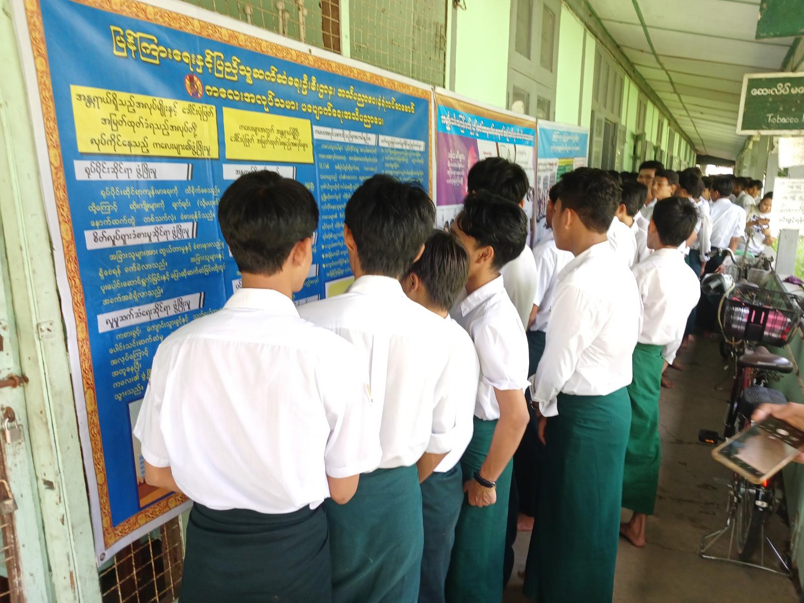 ထို့နောက် ဟောပြောပွဲတက်ရောက်လာကြသော ကျောင်းသား၊ ကျောင်းသူလေးများက မြို့နယ်ပြန်ကြားရေးနှင့်ပြည်သူ့ဆက်ဆံရေးဦးစီးဌာနမှ ခင်းကျင်းပြသထားသော အမျိုးသမီးများ သိထားသင့်သည့် မှုခင်းကာကွယ်ရေး အသိပညာပေး၊ လူကုန်ကူးမှု အသိပညာပေး၊ အရွယ်မရောက်သေးသူများ စစ်မှုထမ်းခြင်းမှ ကာကွယ်ထိန်းသိမ်းရေးအသိပညာပေး စသည့်နံရံကပ်စာစောင်များနှင့် စာအုပ်စာစောင်များအား စိတ်ပါဝင်စားစွာ လေ့လာကြည့်ရှု ခဲ့ကြကြောင်း သိရသည်။