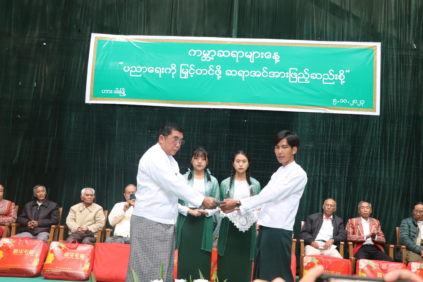 ထို့နောက် ကန်တော့ခံအသက်(၇၀)နှစ်နှင့်အထက်ရှိ ဆရာကြီး၊ ဆရာမကြီးများအား ချင်းပြည်နယ်ဝန်ကြီးချုပ်၊ ပြည်နယ်တရားလွှတ်တော်တရားသူကြီးချုပ်နှင့် ပြည်နယ်အစိုးရအဖွဲ့ဝင် ဝန်ကြီးများက လက်ဆောင်ပစ္စည်းပေးအပ်ပြီး၊ ကန်တော့ခံဆရာများကိုယ်စား ပြည်နယ်ပညာရေးမှူး အငြိမ်းစား ဦးရွှေခါရ်လျန်းက ကျေးဇူးတင်စကား ပြန်လည်ပြောကြားသည်။