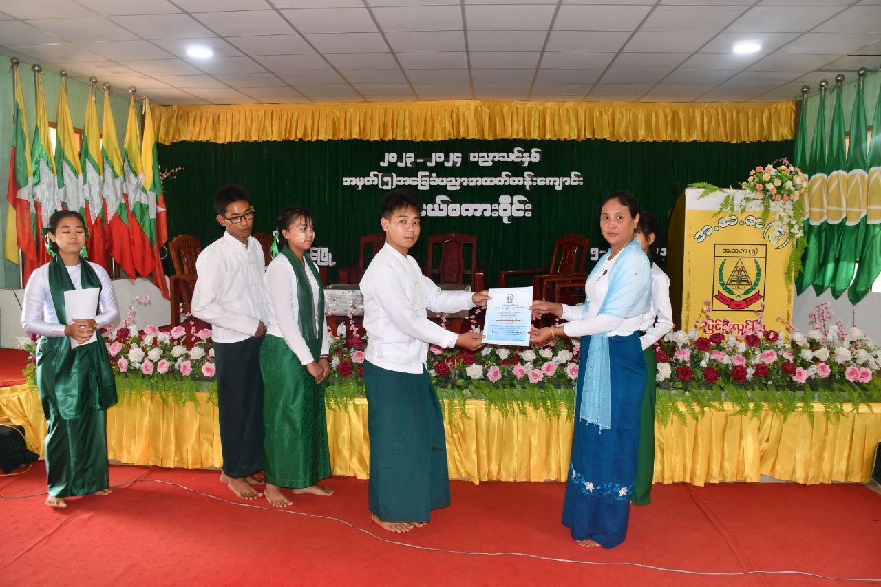 ထို့နောက် လူငယ်စကားဝိုင်းတွင် ပါဝင်ဆွေးနွေးခဲ့ကြသောကျောင်းသား၊ ကျောင်းသူများအား ပြင်ဦးလွင်ခရိုင် ပြန်ကြားရေးနှင့်ပြည်သူ့ဆက်ဆံရေးဦးစီးဌာနမှ လက်ထောက်ညွှန်ကြားရေးမှူး ဒေါ်ဝါဝါလွင်က ဂုဏ်ပြုမှတ်တမ်းတင် လက်မှတ်များပေးအပ်ပြီး စာရေးဆရာကိုရွှေအောင်သင်းက အမှတ် (၅) အခြေခံပညာအထက်တန်းကျောင်း စာကြည့်တိုက်အတွက် သုတ/ရသ စာအုပ်များပေး အပ်လှူဒါန်းရာ ကျောင်းအုပ်ဆရာမကြီး ဒေါ်တင်တင်ဝေက လက်ခံရယူခဲ့ပြီး လူငယ်စကားဝိုင်း အခမ်းအနားအား အောင်မြင်စွာရုပ်သိမ်းခဲ့သည်။