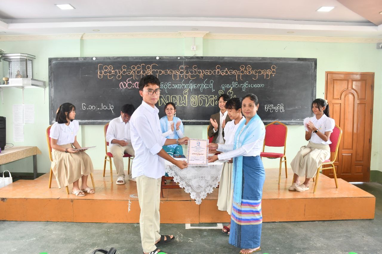 ထို့နောက် လူငယ်စကားဝိုင်းတွင် ပါဝင်ဆွေးနွေးခဲ့ကြသောကျောင်းသား၊ ကျောင်းသူများအား ပြင်ဦးလွင်ခရိုင် ပြန်ကြားရေးနှင့်ပြည်သူ့ဆက်ဆံရေးဦးစီးဌာနမှ လက်ထောက်ညွှန်ကြားရေးမှူး ဒေါ်ဝါဝါလွင်က ဂုဏ်ပြုမှတ်တမ်းတင် လက်မှတ်များပေးအပ်ပြီး စာရေးဆရာ ကိုရွှေအောင်သင်း က လင်းထက်ကိုယ်ပိုင် အထက်တန်းကျောင်းစာကြည့်တိုက်အတွက် သုတ/ရသ စာအုပ်များပေးအပ်လှူဒါန်းရာ ကျောင်းအုပ်ဆရာမကြီး ဒေါ်နွေးနွေးပြုံး လက်ခံရယူခဲ့ပြီး လူငယ်စကားဝိုင်း အခမ်းအနားအား အောင်မြင်စွာရုပ်သိမ်းခဲ့သည်။