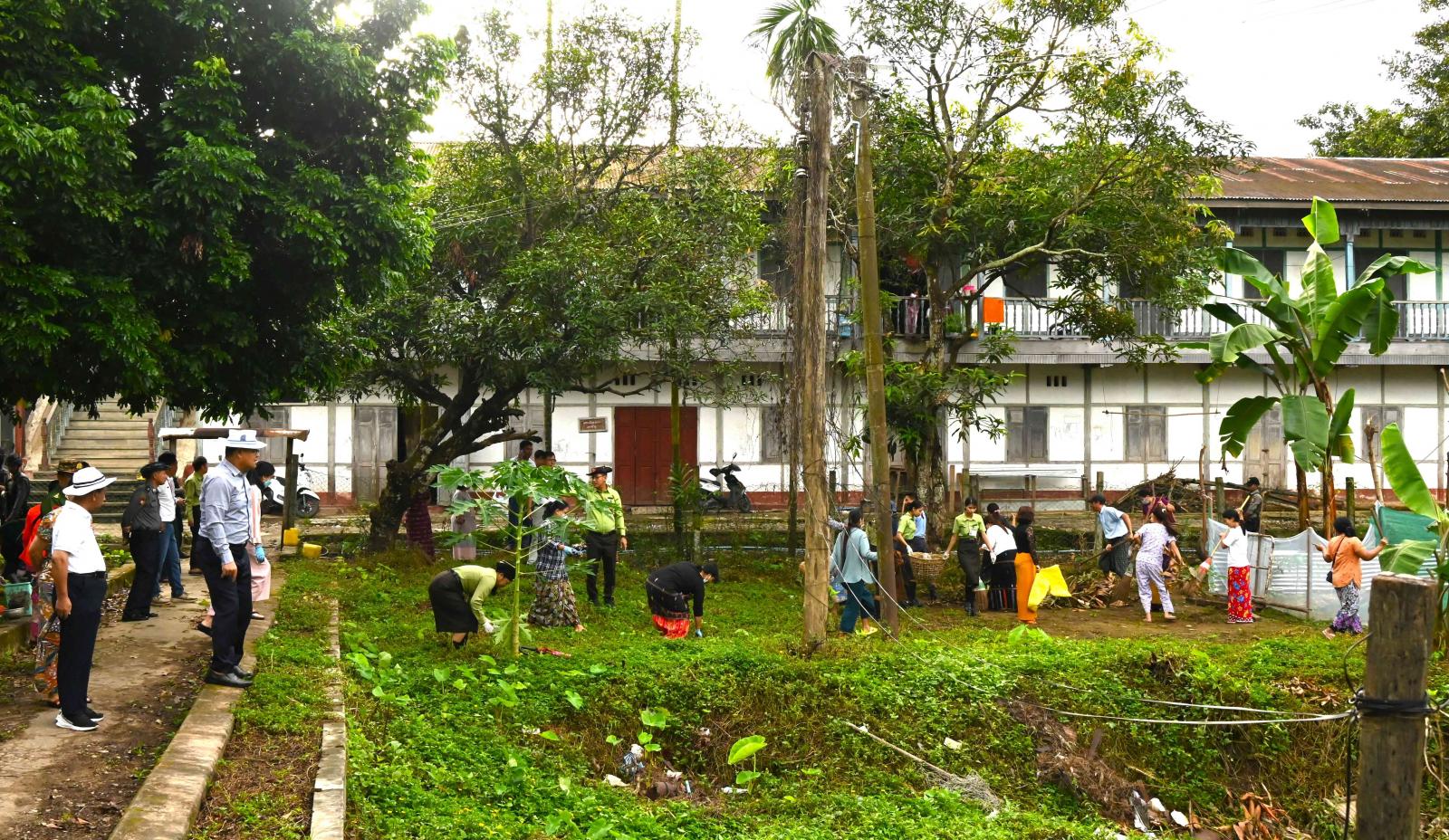 ထိုမှတစ်ဆင့် ကုတင် ၅၀၀ ဆံ့ မြစ်ကြီးနားပြည်သူ့ဆေးရုံဝင်းအတွင်း ကလေးဖျားနာကုသဆောင်အနီးတွင် မြောက်ပိုင်းတိုင်းစစ်ဌာနချုပ်လက်အောက်ရှိ နယ်မြေခံတပ်မတော်သားများနှင့်အတူ သစ်ပင်ခြုံနွယ်များ ခုတ်ထွင်ရှင်းလင်းခြင်း၊ မြက်ရိတ်ခြင်းလုပ်ငန်းများကို ပူးပေါင်းဆောင်ရွက်ခဲ့ကြပြီး ဆေးရုံကြီးမျက်နှာစာရှိ အမှိုက်များကောက်ယူရှင်းလင်းနိုင်ရေးနှင့် ဆေးရုံအရိုးကုသဆောင် ဘေးမြေကွက်လပ်တွင် ပန်းခြံငယ်တစ်ခုအကောင်အထည်ဖော်နိုင်ရေး မြေယာရှင်းလင်းဆောင်ရွက် ထားရှိမှုအခြေအနေများကို လှည့်လည်ကြည့်ရှုစစ်ဆေးခဲ့ကြပြီး လိုအပ်သည်များကို တာဝန်ရှိသူများနှင့် ညှိနှိုင်းပေါင်းစပ်ဆောင်ရွက်ပေးခဲ့ကြောင်း သိရှိရသည်။