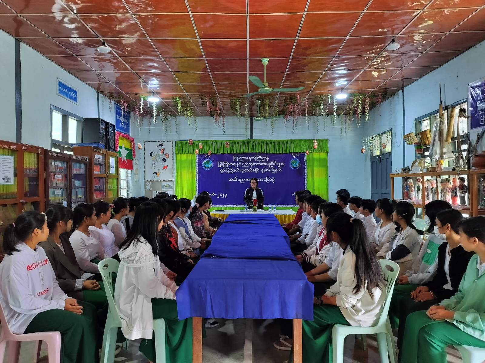 အခမ်းအနားတွင် ပြန်ကြားရေးနှင့်ပြည်သူ့ဆက်ဆံရေးဦးစီးဌာန၊ မြို့နယ်ဦးစီးအရာရှိ ဒေါ်စန္ဒာဝင်းက အခမ်းအနားကျင်းပရခြင်း၏ ရည်ရွယ်ချက်၊ လူငယ်များအနေဖြင့် ဗလငါးတန်နှင့်ပြည့်စုံလာစေရေး၊ ပြောဆိုဆွေနွေးတတ်သည့် အလေ့အထများ၊ အလေ့အကျင့်ကောင်းများ ရရှိလာနိုင်စေရေးအတွက် လူငယ်စကားဝိုင်းများ၊ လူငယ်အသိပညာပေးဟောပြောပွဲများကို ကျင်းပပြုလုပ်လျက်ရှိပါကြောင်း၊ လူငယ်များအနေဖြင့် ယခုအသိပညာပေးဟောပြောပွဲမှရရှိသည့် အသိပညာဗဟုသုတများကို မိမိနှင့်မိမိပတ်ဝန်းကျင်အတွက် ကောင်းကျိုးရှိရှိ ကြံဆအသုံးပြုတတ်စေရန် လိုအပ်ပါကြောင်းနှင့် ယခုလိုအသိပညာပေးဟောပြောပွဲများကိုလည်း ဆက်လက်ကျင်းပပေးမည်ဖြစ်ပါကြောင်း ဆွေးနွေးပြောကြားခဲ့ပါသည်။ ထို့နောက် ပြန်ကြားရေးနှင့်ပြည်သူ့ဆက်ဆံရေးဦးစီးဌာန၊ ဒုတိယဦးစီးမှူး ဦးထက်မြက်သူက ကျောင်းသား/ကျောင်းသူများအား ကလေးအလုပ်သမားပပျောက်ရေး၊ လူကုန်ကူးမှုတားဆီးကာကွယ်ရေးအကြောင်းအရာနှင့် စာပေဖတ်ရှုခြင်းဖြင့် ရရှိနိုင်မည့်အကျိုးကျေးဇူးများကို အသိပညာပေး ဟောပြောခဲ့ကြောင်း သိရသည်။