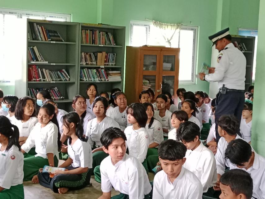 ထို့နောက် လူငယ်ရေးရာဟောပြောပွဲတက်ရောက်ကြသည့် အမှတ် (၆) အခြေခံပညာ အထက်တန်းကျောင်းမှ အထက်တန်းအဆင့် ကျောင်းသား၊ ကျောင်းသူများအား ယာဥ်ထိန်းရဲ တပ်ဖွဲ့မှ အသိပညာပေးလက်ကမ်းစာစောင်များဖြန့်ဝေးခဲ့ပြီး ပြန်ကြားရေးနှင့်ပြည်သူ့ဆက်ဆံရေးဦးစီးဌာနမှ ပြသထားသည့် အသိပညာပေးနံရံကပ်စာစောင် များကို ကျောင်းသား၊ ကျောင်းသူများက လေ့လာကြည့်ရှု့ခဲ့ကြကြောင်း သိရသည်။