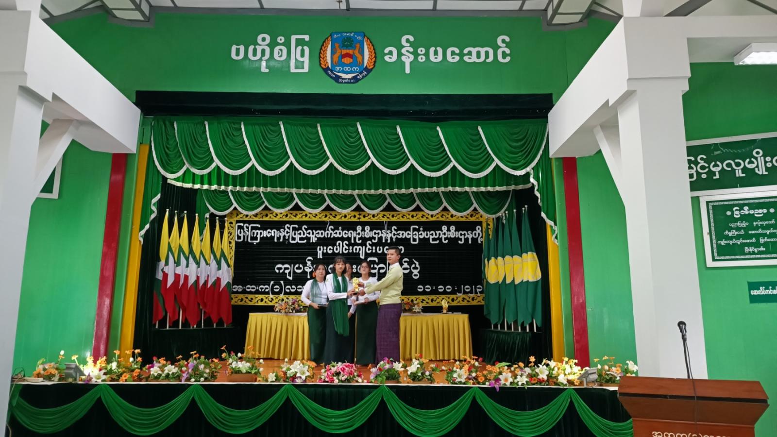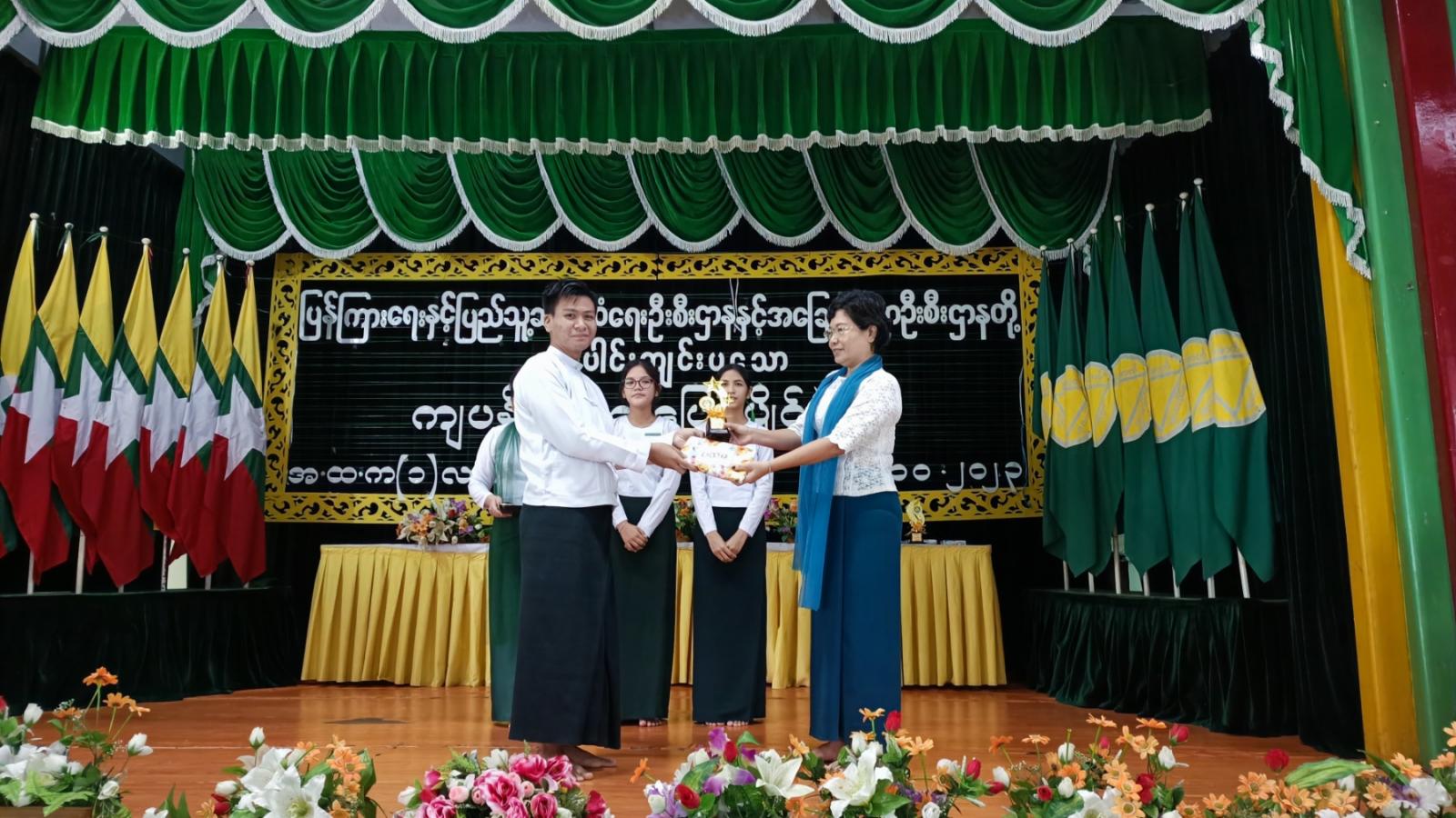 ဆက်လက်၍ ကျပန်းစကားပြောပြိုင်ပွဲတွင် ဆုရရှိသော အထက်တန်းကျောင်းသား၊ ကျောင်းသူ (၃) ဦးတို့အား သက်ဆိုင်ရာတာဝန်ရှိသူများက ဆုများအသီးသီးပေးအပ်ချီးမြှင့်ပြီး အမှတ် (၂) အခြေခံပညာအထက်တန်းကျောင်းမှ ကျောင်းအုပ်ဆရာကြီး ဦးခင်မောင်ဝင်းက ကျေးဇူးတင်စကားပြောကြားခဲ့ကြောင်း သိရသည်။