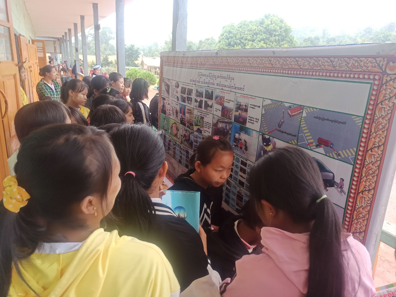 ထို့နောက် ပြန်ကြားရေးနှင့်ပြည်သူ့ဆက်ဆံရေးဦးစီးဌာနမှ ခင်းကျင်းပြသသည့် ယာဥ်စည်းကမ်း၊ လမ်းစည်းကမ်း၊ မူးယစ်ဆေးအန္တရာယ်တားဆီးကာကွယ်ရေး၊ လူကုန်ကူးမှုတားဆီးကာကွယ်ရေး၊ သွေးလွန်တုပ်ကွေးရောဂါ ကြိုတင်ကာကွယ်ရေး အသိပညာပေး နံရံကပ်စာစောင်နှင့် နံရံကပ်ဓာတ်ပုံများကို ကျောင်းသား/ ကျောင်းသူများက ကြည့်ရှုလေ့လာ မှတ်သားခဲ့ကြကြောင်း သိရသည်။