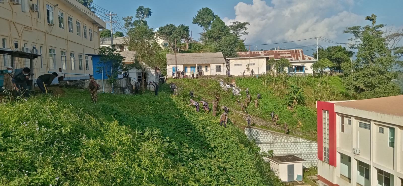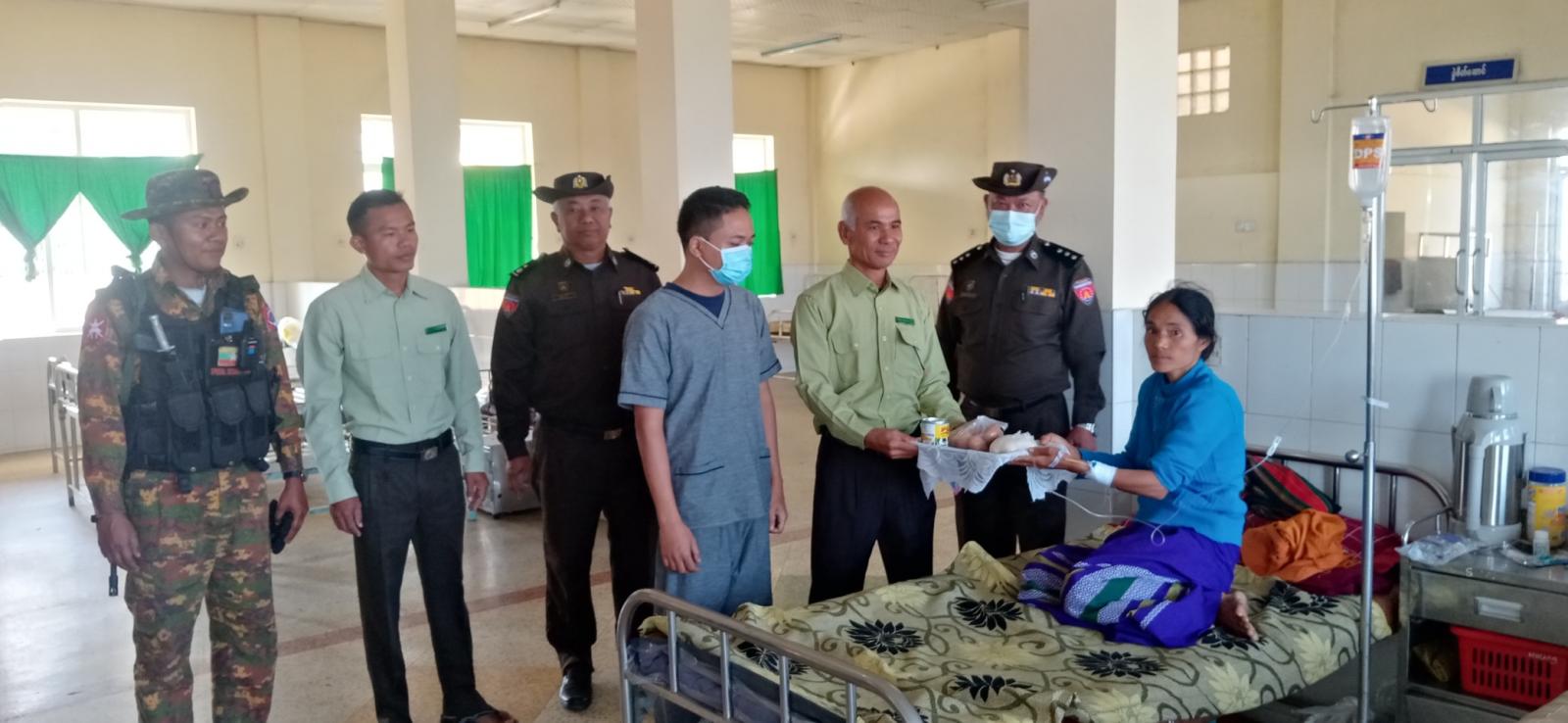 စစ်နယ်မြေမှူး ဗိုလ်မှူးကြီး ကျော်ဝင်းမြင့်၏ ဦးဆောင်မှုဖြင့် ခရိုင်ပြည်သူ့ဆေးရုံ အတွင်း/ အပြင်နှင့် ခရိုင်ပြည်သူ့ဆေးရုံ ပရဝဏ်အတွင်းရှိ ချုံများထူထပ်လျက်ရှိသည့် နေရာများ ရှင်းလင်းခြင်းကို ဆောင်ရွက်ခဲ့ကြသည်။ အဆိုပါ စုပေါင်းသန့်ရှင်းရေးကို တပ်မတော်သားများ၊ မြန်မာနိုင်ငံရဲတပ်ဖွဲ့ဝင်များနှင့် ဌာနဆိုင်ရာဝန်ထမ်းများဖြင့် စုပေါင်းသန့်ရှင်းရေးကို ဆောင်ရွက်ခဲ့ကြသည်။ ထို့နောက် စစ်နယ်မြေမှူး ဗိုလ်မှူးကြီး ကျော်ဝင်းမြင့်၏ အစီအစဉ်ဖြင့် ခရိုင်ပြည်သူ့ဆေးရုံတွင် လူနာများအား ဆေးကုသပေးနေသည့် စစ်ဗိုလ်ကြီး ဆရာဝန်(၂)ဦးကို တစ်ဦးလျှင် ကျပ်သုံးသိန်းနှုန်းဖြင့်လည်းကောင်း၊ သူနာပြု(၂)ဦးကို တစ်ဦးလျှပ် ကျပ်တစ်သိန်းခွဲနှုန်းဖြင့်လည်းကောင်း၊ ဆေးရုံတက်ရောက်နေသည့် လူနာ(၁၀)ဦးကို ကြက်ဥ၊ နို့ဆီနှင့် သကြားတို့ စစ်နယ်မြေမှူးကိုယ်စား ခရိုင်/မြို့နယ် စီမံအုပ်ချုပ်ရေးအဖွဲ့က အသီးသီး ပေးအပ်ခဲ့ကြကြောင်း သိရသည်။