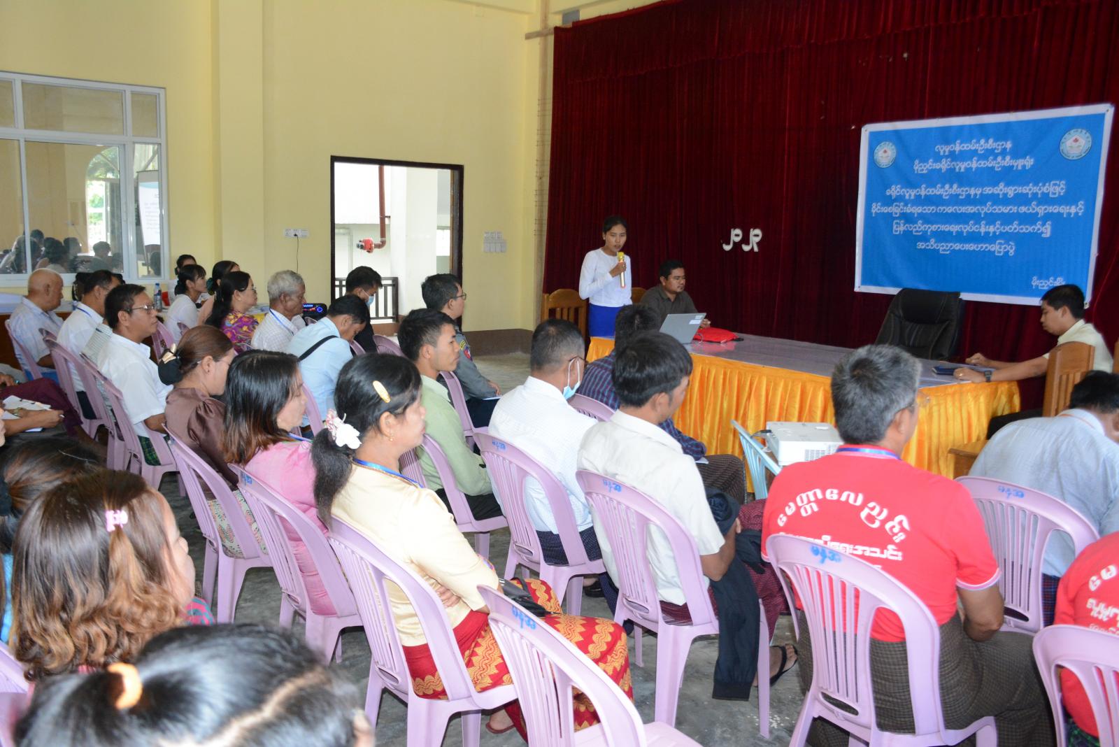 ကချင်ပြည်နယ် မိုးညှင်းခရိုင် မိုးညှင်းမြို့တွင် ခရိုင်လူမှုဝန်ထမ်းဦးစီးဌာနမှ အဆိုးရွားဆုံးပုံစံဖြင့်ခိုင်းစေခြင်းခံရသော ကလေးအလုပ်သမားဖယ်ရှားရေးနှင့် ပြန်လည်ကုစားရေးလုပ်ငန်းများနှင့် ပတ်သက်၍ အသိပညာပေးဟောပြောပွဲကို ယနေ့နံနက် ၁၀နာရီအချိန်က စုပေါင်းရုံးရှိ မြို့နယ် အထွေထွေအုပ်ချုပ်ရေးဦးစီးဌာန အစည်းအဝေးခန်းမ၌ ကျင်းပခဲ့သည်။