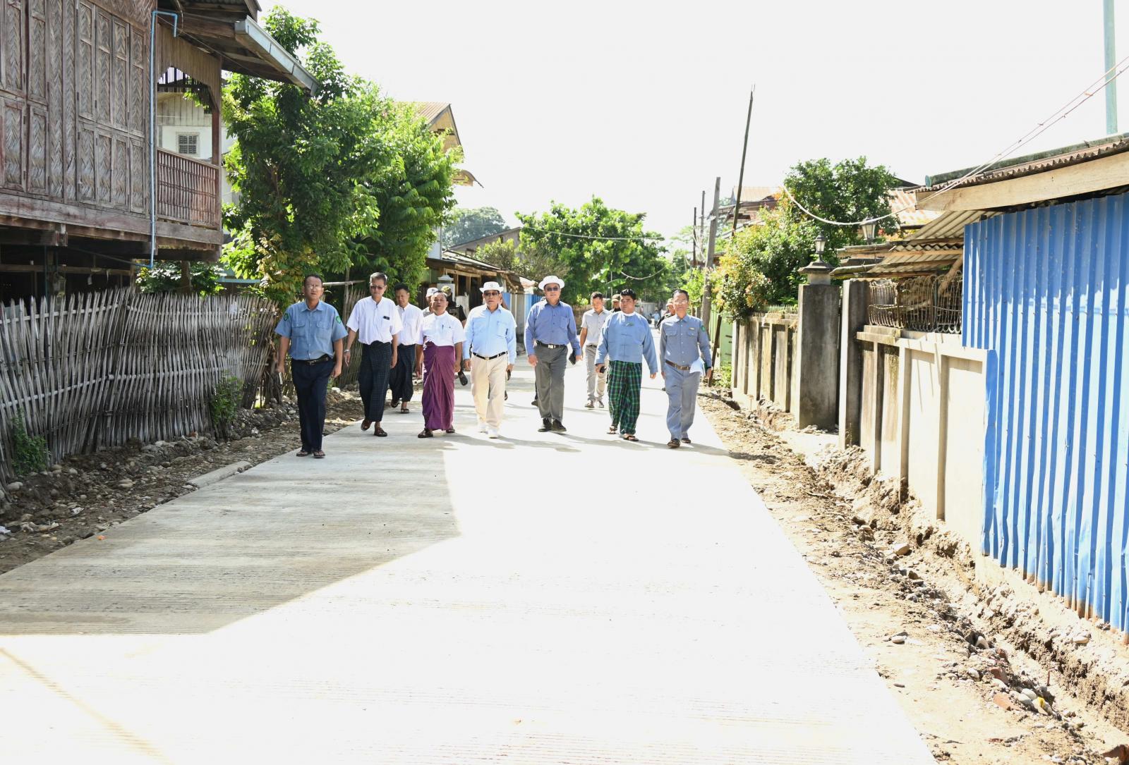 ယင်းနောက် ခေမာသီရိရပ်ကွက် လမ်းသွယ် ၁၄ အရှည် ၁၀၀၀ ပေ၊ မြို့သစ်ကြီးရပ်ကွက် လမ်းသွယ် ၄ အရှည် ၃၆၅ ပေတို့အား ကတ္တရာလမ်းသစ်များအဖြစ် အဆင့်မြှင့်တင်ဆောင်ရွက်ပေးနိုင်ရေးနှင့် အေးမြသာယာလမ်းသွယ် ၁၈ (ရှမ်းရွာလမ်းမကြီး) နိုင်လွန်ကတ္တရာလမ်းအဖြစ် အဆင့်မြှင့်တင် ဆောင်ရွက်ပေးနိုင်ရေးနှင့် ရှမ်းရွာအတွင်း ၂၀၂၃-၂၀၂၄ ဘဏ္ဍာနှစ်ရန်ပုံငွေဖြင့် ဆောင်ရွက်ပြီးစီးသည့် ခပ်လားလမ်းအရှည် ၁၀၀၀ ပေအား ကတ္တရာခင်းကျင်းဆောင်ရွက်ပြီးစီးမှု အခြေအနေများကို လှည့်လည်ကြည့်ရှုစစ်ဆေးခဲ့ကြကြောင်း သိရှိရသည်။