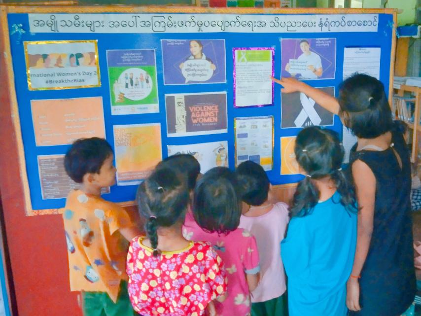 ထို့နောက် ပြန်ကြားရေးနှင့်ပြည်သူ့ဆက်ဆံရေးဦးစီးဌာနရုံးရှေ့ နံရံကပ်ပြဘုတ်တွင် အမျိုးသမီးများအပေါ် အကြမ်းဖက်မှုနှင့်ပတ်သက်သော အသိပညာပေးအကြောင်းအရာများကို အကျယ်တဝင့်သိရှိစေရေးအတွက် ပြသထားရာ ဒေသနေပြည်သူများနှင့် ကျောင်းသား/ကျောင်းသူလူငယ်များက ကြည့်ရှုလေ့လာ မှတ်သားခဲ့ကြကြောင်း သိရသည်။