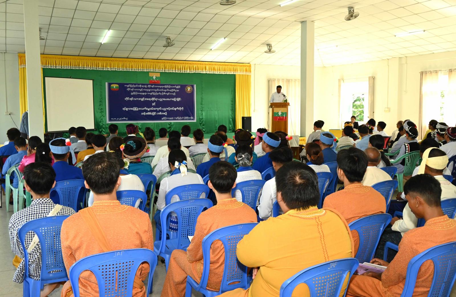 ထို့နောက် ပြည်နယ်လူမှုဝန်ထမ်းဦးစီးဌာန၊ ပြည်နယ်ဦးစီးမှူး ဦးသန်းအောင်က အမျိုးသမီးအခွင့် အရေး၊ မသန်စွမ်းအခွင့်အရေး၊ ကလေးသူငယ် အခွင့်အရေး၊ လူမှုရေးပင်စင်တို့အကြောင်းကို လည်းကောင်း၊ ကျန်းမာရေးဦးစီးဌာန၊ ဒုတိယပြည်နယ်ဦးစီးမှူး ဒေါက်တာလှိုင်လှိုင်ဌေးက ကျန်းမာ ရေးစောင့်ရှောက်မှုဆိုင်ရာများနှင့် စပ်လျဉ်း၍ လည်းကောင်း၊ တိုင်းရင်းသားစာပေနှင့် ယဉ်ကျေးမှု ဦးစီးဌာန၊ လက်ထောက် ညွှန်ကြားရေးမှူး ဒေါ်အိအိအေးက တိုင်းရင်းသားဘာသာသင် ဆရာ၊ ဆရာမများ ခန့်ထားရေးဆိုင်ရာ လုပ်ငန်းဆောင်ရွက်နေမှုများကို လည်းကောင်း၊ ပတ်ဝန်းကျင်ထိန်းသိမ်းရေး ဦးစီးဌာန၊ လက်ထောက်ညွှန်ကြားရေးမှူး ဦးမျိုးအောင်ကျော်က တိုင်းရင်းသားလူမျိုးများအတွက် ပတ်ဝန်းကျင်ထိန်းသိမ်းရေးဆိုင်ရာများကိုလည်းကောင်း အသီးသီး အသိပညာပေးဟောပြောပေးခဲ့ ကြသည်။