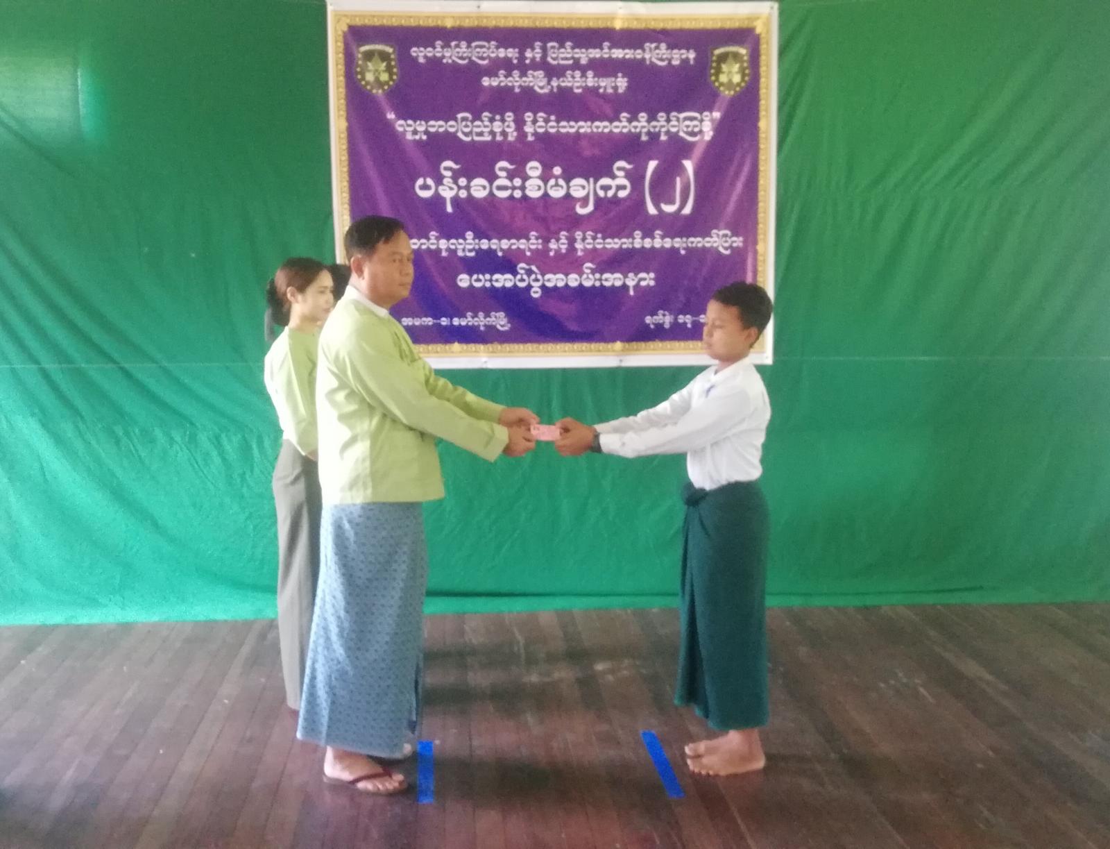 စစ်ကိုင်းတိုင်းဒေသကြီး၊ မော်လိုက်ခရိုင်၊ မော်လိုက်မြို့၌ ပန်းခင်းစီမံချက်(၂) အိမ်ထောင်စု လူဦးရေစာရင်းနှင့် နိုင်ငံသားစိစစ်ရေးကတ်ပြား ပေးအပ်ပွဲအခမ်းအနားကို ယမန်နေ့ မွန်းလွဲ (၁)နာရီအချိန်က အမက(၁)ကျောင်း၌ ကျင်းပပြုလုပ်သည်။