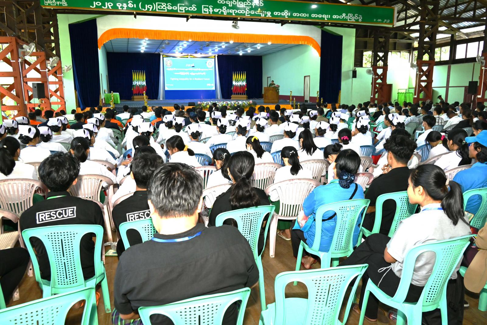 အခမ်းအနားတွင် ကချင်ပြည်နယ်သဘာဝဘေးအန္တရာယ်ဆိုင်ရာ စီမံခန့်ခွဲမှုကော်မတီဥက္ကဋ္ဌ၊ ပြည်နယ်အစိုးရအဖွဲ့ဝင် လုံခြုံရေးနှင့် နယ်စပ်ရေးရာဝန်ကြီး ဗိုလ်မှူးကြီးကျော်သူရက သဘာဝဘေး အန္တရာယ်လျော့ပါးရေးလုပ်ငန်းများကို နိုင်ငံတော်အနေဖြင့်အရှိန်အဟုန်ဖြင့် တိုးမြှင့်ဆောင်ရွက်လျက် ရှိသကဲ့သို့ ကချင်ပြည်နယ်အတွင်း ဘေးမဖြစ်မီ လိုအပ်သည့် ကြိုတင်ကာကွယ်မှုများကိုဆောင်ရွက် သွားရမည်ဖြစ်ပါ ကြောင်း၊ ဘေးဖြစ်ပွားပါကလည်း လိုအပ်သည့် တုံ့ပြန်ဆောင်ရွက်မှုများ၊ အရေးပေါ်ထောက်ပံ့မှုများ၊ ဘေးအန္တရာယ်လျှော့ပါးရေး လုပ်ငန်းများကို ဘက်စုံ၊ ကဏ္ဍစုံက ထည့်သွင်းပေါင်းစပ် ဆောင်ရွက်ရမည်ဖြစ်ကြောင်း၊ ထိုသို့ ဆောင်ရွက်ရာတွင် ပြည်သူများအတွက် ဘေးဒဏ်ကြံ့ကြံ့ခိုင် ရင်ဆိုင်နိုင်စွမ်းရှိသည့် လူ့မှုအသိုက်အဝန်းတစ်ခုဖြစ် ပေါ်လာစေရေး၊ ပြည်သူလူထုအကြား ရင်ဆိုင်ကြုံတွေ့ရသည့် ကဏ္ဍအလိုက် မညီမျှမှု များကို တိုက်ဖျက်ပေးရန်၊ လူတစ်ဦးချင်းစီက ကိုယ်စီ တာဝန်သိစိတ်ဖြင့် ပူးပေါင်းပါဝင်လာအောင် ဆောင်ရွက်သွားရမည်ဖြစ်ကြောင်း တိုက်တွန်းမှာကြားသည်။