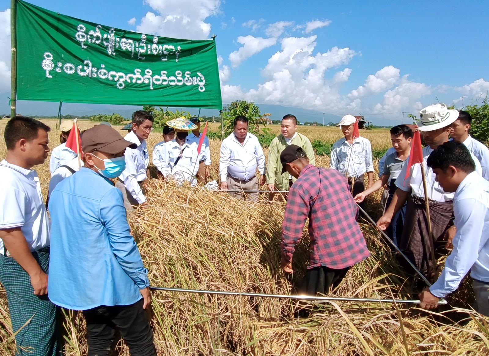 အဆိုပါ မိုးစပါးစံကွက်ရိတ်သိမ်းရာတွင် မြို့နယ်စီမံအုပ်ချုပ်ရေးအဖွဲ့ဥက္ကဋ္ဌ ဦးမြတ်ခိုင်ကို၊ ခရိုင်စိုက်ပျိုးရေးဦးစီးဌာနမှ ခရိုင်ဦးစီးမှူး ဦးကျော်မိုးထွန်း၊ မြို့နယ်ဦးစီးမှူး ဦးတင့်မျိုးကိုနှင့် ဝန်ထမ်းများ၊ မြို့နယ်လယ်ယာမြေစီမံခန့်ခွဲမှုနှင့် စာရင်းအင်းဦးစီးဌာနမှ မြို့နယ်ဦးစီးမှူး ဦးမင်းဇော်နှင့် ဝန်ထမ်းများ၊ တောင်သူများက ပူးပေါင်းပါဝင် ရိတ်သိမ်းကြရာ ဆင်းဧကရီ-၃ မိုးစပါး ကောင်းကိုယ်စားပြု တစ်ဧကလျှင် အစိုထွက်တင်း ၁၃၃ ဒဿမ ၇၅ တင်း ထွက်ရှိကြောင်း သိရသည်။