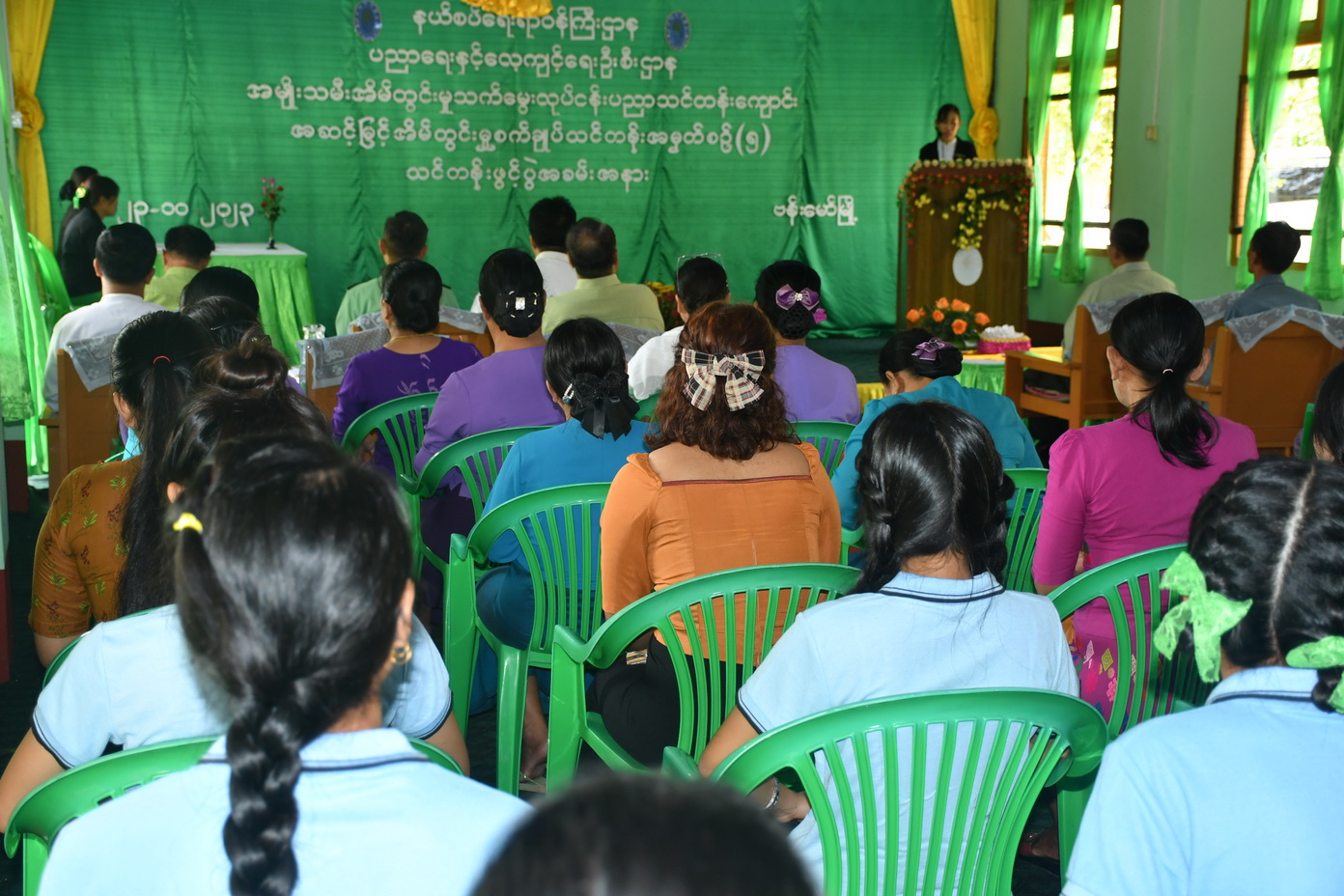 အခမ်းအနားတွင် ခရိုင်စီမံအုပ်ချုပ်ရေးအဖွဲ့ဥက္ကဋ္ဌ ဦးခင်မောင်လွင်က သင်တန်းသို့တက် ရောက်လာကြသည့် သင်တန်းသူများဖြစ်သည့် ပြည်ထောင်စုတိုင်းရင်းသူများသည် ပညာရှာမှီးရင်း တိုင်းရင်းသူအချင်းချင်း ပိုမိုစည်းလုံးချစ်ခင်လျက် ပြည်ထောင်စုစိတ်ဓာတ်ခိုင်မြဲသည့် တိုင်းရင်းသူလေးများ ဖြစ်လာစေရန်၊ နယ်စပ်ဒေသနှင့် ဆင်းရဲနွမ်းပါးသော ဒေသများရှိ အမျိုးသမီးငယ်များကို အိမ်တွင်းမှု သက်မွေးပညာများ သင်ကြားပေးရန်နှင့် သင်ကြားတတ်မြောက်သည့် အသက်မွေးဝမ်းကျောင်း ပညာရပ်များဖြင့် ကိုယ်ပိုင်စီးပွားရေးလုပ်ငန်း ထူထောင်နိုင်သည်အထိ ကူညီဆောင်ရွက်ပေးရန်၊ တိုင်းချစ်ပြည်ချစ်၊ အမျိုးချစ်စိတ် အစဉ်ရှင်သန် ထက်မြက်နေသည့် အမျိုးသမီးလေးများ ဖြစ်လာစေရန်၊ နိုင်ငံတော်က အိမ်တွင်းမှုပညာရပ်များကို နယ်စပ်ဒေသတွင်ရှိသည့် တိုင်းရင်းသူလေးများအတွက်သာမက လူဦးရေထူထပ်သည့် အတွင်းပိုင်းဒေသက အမျိုးသမီးလေးများ အသိပညာ၊ အတတ်ပညာများတိုးပွားစေရေး အလုပ်အကိုင် အခွင့်အလမ်းများ ရရှိစေရေးနှင့် ဆင်းရဲနွမ်းပါးမှု လျော့ချစေရေးစသည့် ရည်ရွယ်ချက်များဖြင့် အဆင့်မြင့် အိမ်တွင်းမှုစက်ချုပ်သင်တန်းကို ဖွင့်လှစ်ပေးခြင်းဖြစ်ကြောင်း အဖွင့်အမှာစကား ပြောကြားခဲ့သည်။