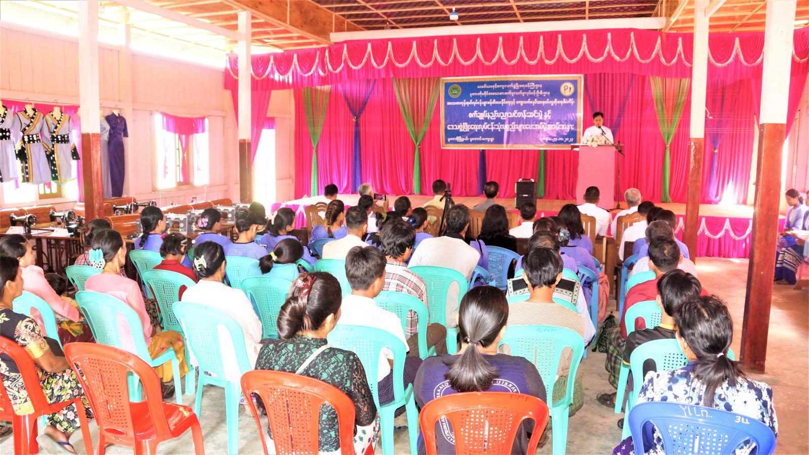 အခမ်းအနားတွင် ခရိုင်စီမံအုပ်ချုပ်ရေးအဖွဲ့ ဉက္ကဋ္ဌ ဦးခေါင်လန်ဒီးက ယခုစက်ချုပ်သင်တန်းကြောင့် သင်တန်းသူ (၁၅)ဦး နည်းပညာရရှိပြီး လုပ်ငန်းရှင်အနေဖြင့် ငါးဦးပေါ်ထွက်လာပြီဖြစ်ကြောင်းနှင့် သင်တန်းသူများအနေဖြင့် မိမိရပ်ရွာဒေသ၊ မိမိမြို့နယ်၊ မိမိခရိုင် ဖွံ့ဖြိုးတိုးတက်ရေးနှင့် အသေးစားထုတ်ကုန်များ ထုတ်လုပ်လာနိုင်အောင် ကြိုးစားဆောင်ရွက်သွားကြရန် တိုက်တွန်း အမှာစကား ပြောကြားပြီး ခရိုင်အသေးစားစက်မှုလက်မှုလုပ်ငန်းဦးစီးဌာန ခရိုင်ဦးစီးမှူး ဦးဇေယျာဖြိုးက သင်တန်းဖွင့်လှစ်ရခြင်း၏ ရည်ရွယ်ချက်များကို ရှင်းလင်းပြောကြားသည်။