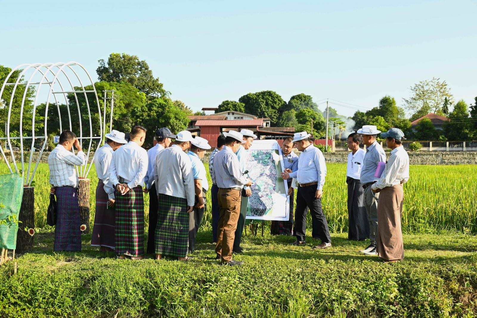 အလားတူ ပြည်နယ်ဝန်ကြီးချုပ်သည် ပြည်နယ်ဝန်ကြီးများ၊ ဌာနဆိုင်ရာတာဝန်ရှိသူများနှင့်အတူ အောက်တိုဘာ ၂၂ ရက် ညနေပိုင်းက မြစ်ကြီးနားမြို့ မန်ခိန်ရပ်ကွက်အတွင်းရှိ ဗလမင်းထင် ဧက ၁၀၀ တင်း ၁၀၀ စံပြစိုက်ကွင်းသို့ သွားရောက်ပြီး မိုးစပါးစိုက်ခင်းများ ပန်းတိုင်အထွက်နှုန်း အထက် ရရှိရေး ကြိုးပမ်းဆောင်ရွက်ခဲ့သည့် မန်ခိန်ကွင်းနှင့် တပ်ကုန်းကွင်းအတွင်း ရိတ်သိမ်းချိန် မိုးစပါးများ အောင်မြင်ဖြစ်ထွန်းနေမှု အခြေအနေများနှင့် ဆိုလာစွမ်းအင်ဖြင့် ဆောင်းသီးထပ်သီးနှံ စိုက်ပျိုးနိုင်ရေး ရေတွင်းတူးဖော်ဆောင်ရွက်ထားရှိမှု၊ ရေရရှိမှု အခြေအနေများကို လှည့်လည်ကြည့်ရှု စစ်ဆေးခဲ့ကြသည်။